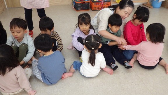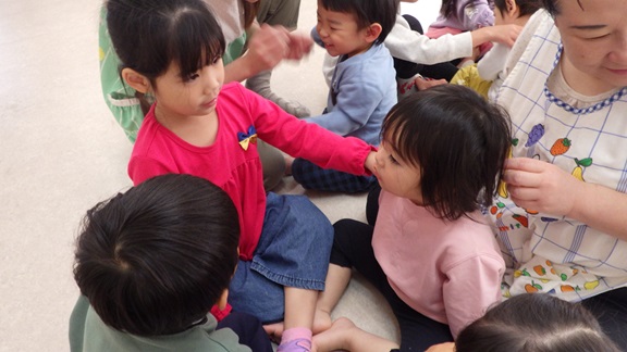 「つんつんつん とんとんとん」のふれあい遊びもしましたよ。