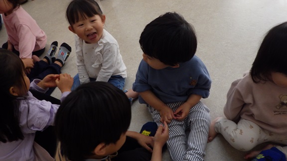 ちなみに、先週は、あめ組(2歳児)さんとも交流しました♪