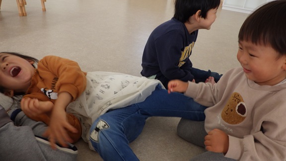 そら・くじら組さんも、「キャッキャ」言いながら、身をよじらせて楽しんでいました♪
