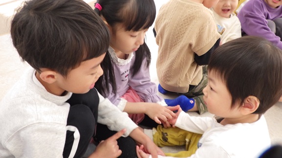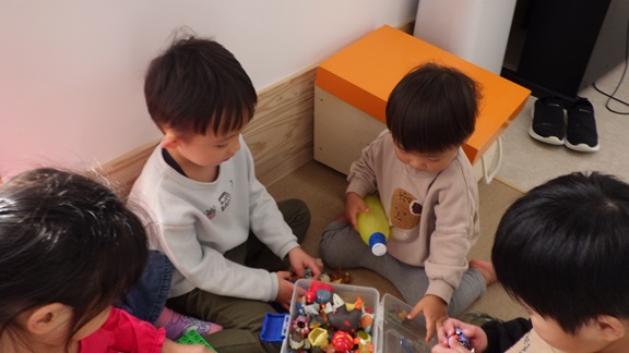 いつもはおもちゃの取り合いが激しいだいち組さんも、遊びがダイナミックすぎるそら・くじら組さんも、なんだか今日は穏やかです。