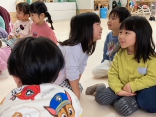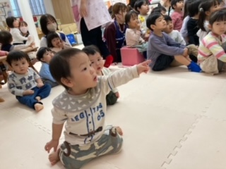 こちらは、パネルシアターです。子どもたちが知っている歌が次々と流れていきましたよ。一緒に歌ったり、手遊びをしたりと楽しく参加していました。