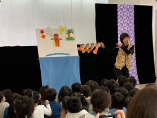 今日は、人形劇団「やじろべえ」さんに来ていただき、人形劇やパネルシアターを楽しみました。