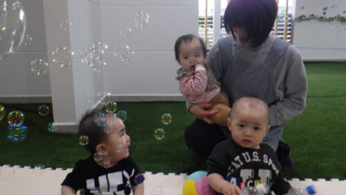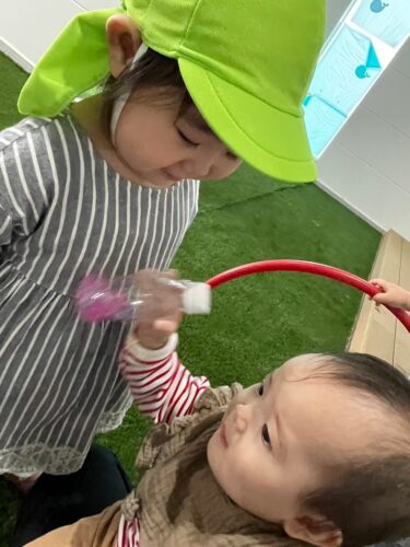 園庭では、にじ組(3歳児)のお姉ちゃんたちが遊んでくれました。