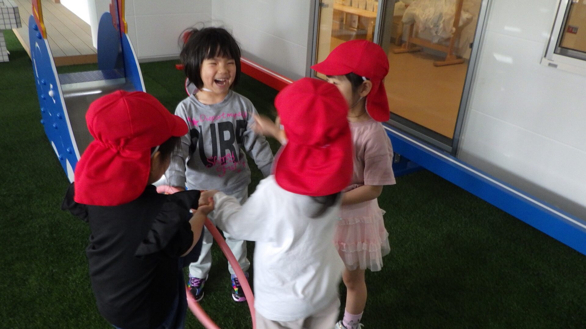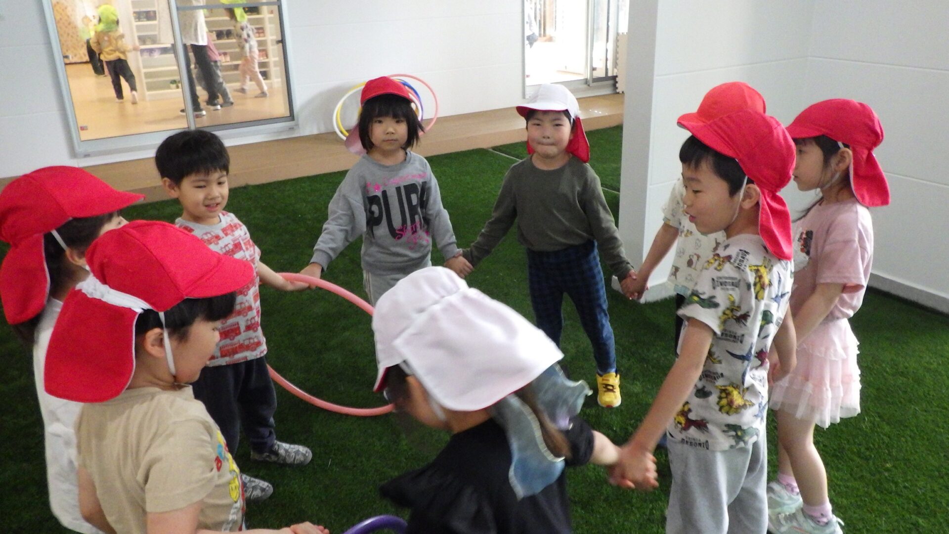 「2回もフラフープ回せたよ!」「手を離さずに隣の友だちに回せた!」とても嬉しそうにしていました。