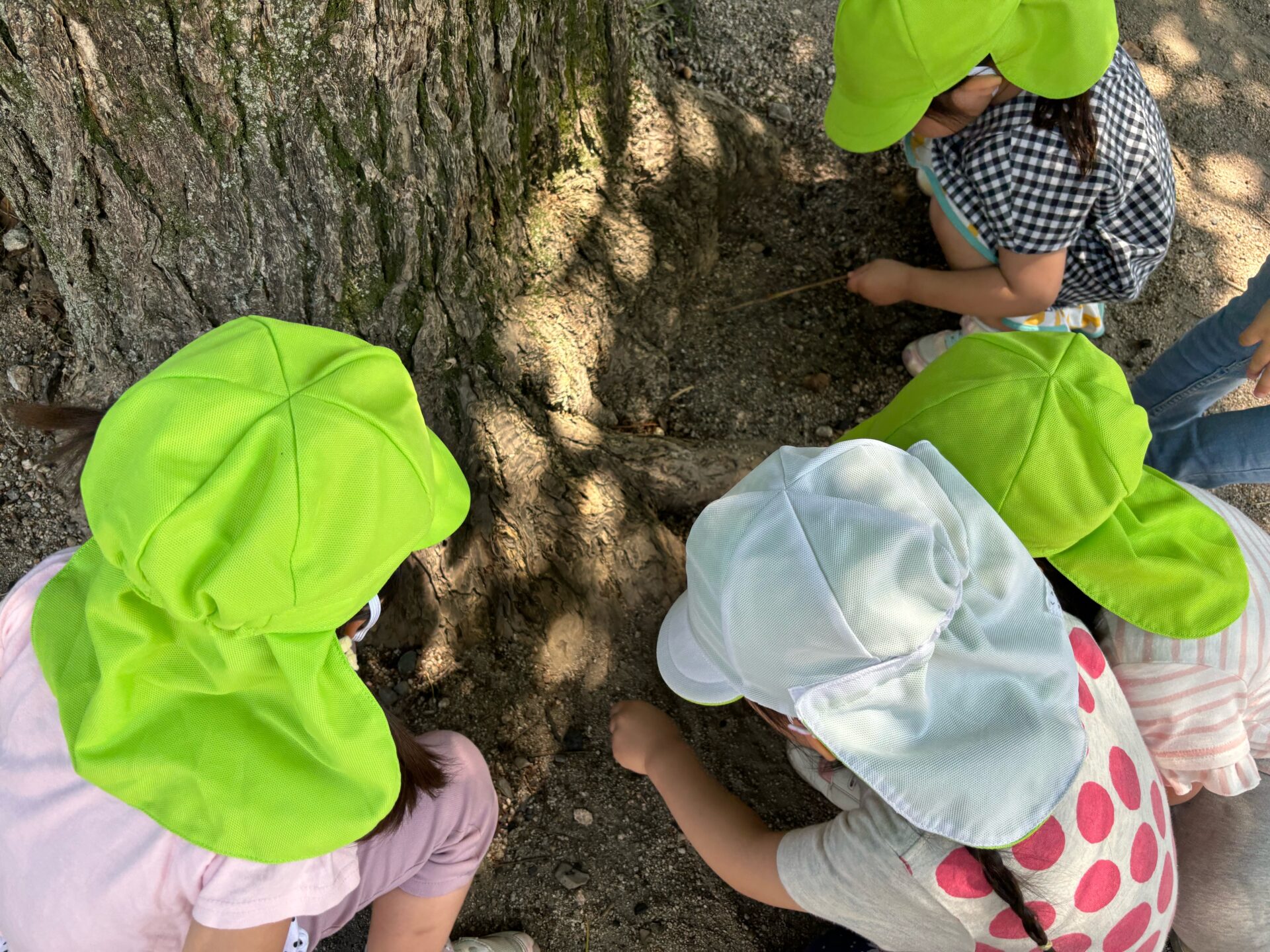 広場で走って遊ぶより木の周りに集まっている子どもたち☆