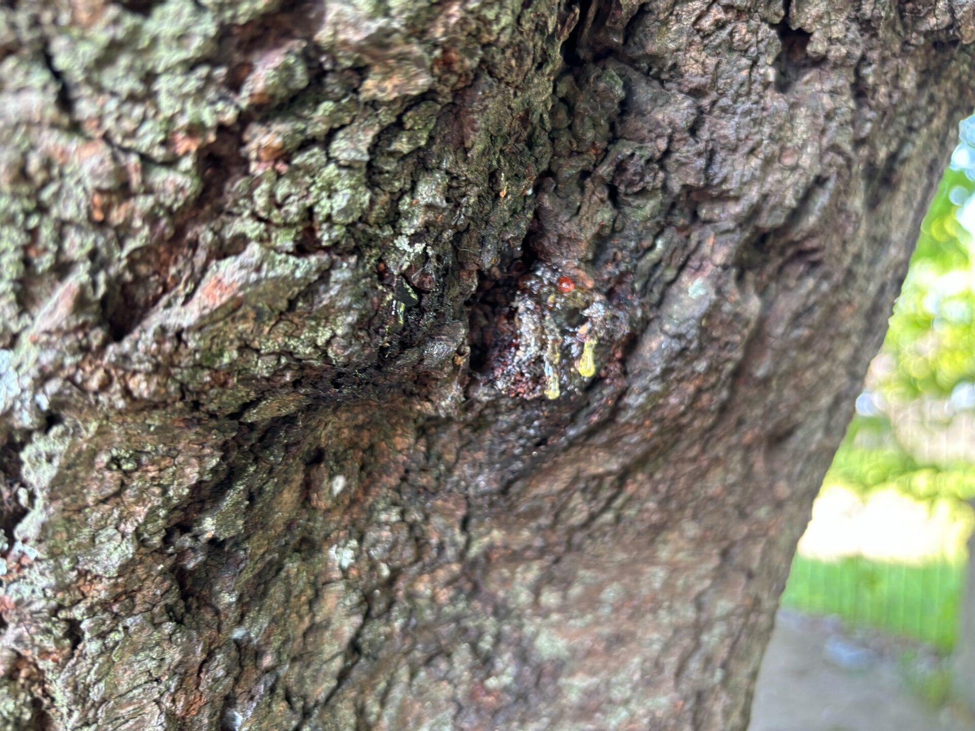 見に行くと木から垂れている樹液を発見!