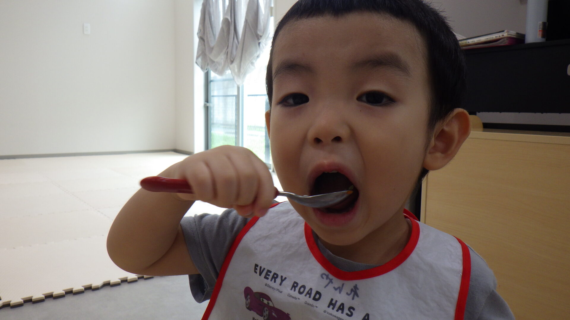 あめ組で育てたピーマンであることを伝えると、こんなに大きな口が開きました。