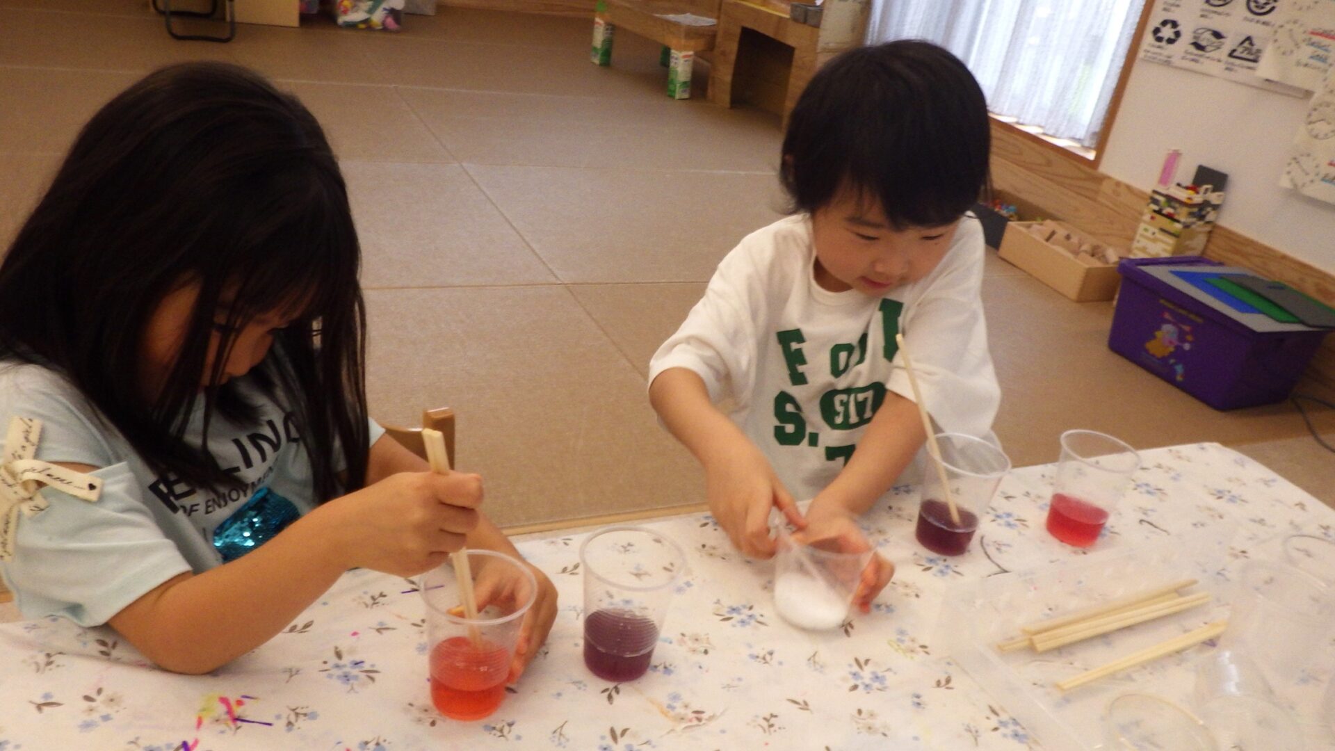 使って色水実験をしました。