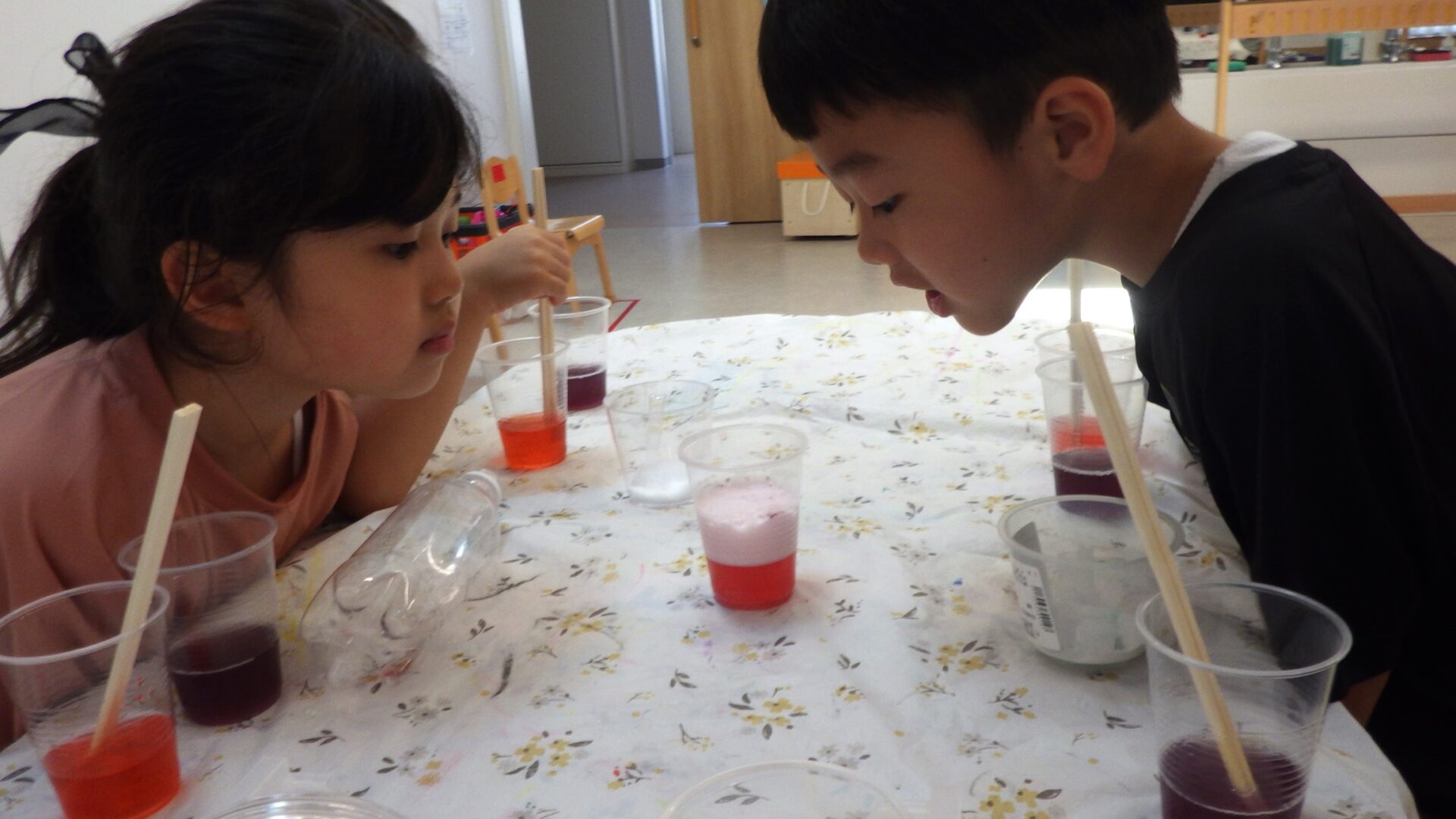 身近なもので色の変化を体験し大喜び!