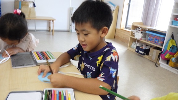 7月から8月に掛けて、水遊びや体操教室等も楽しく参加しながら、合間を縫って、せっせせっせと作り物♪