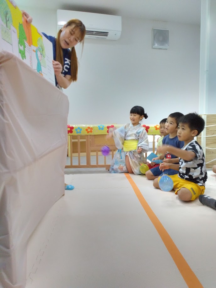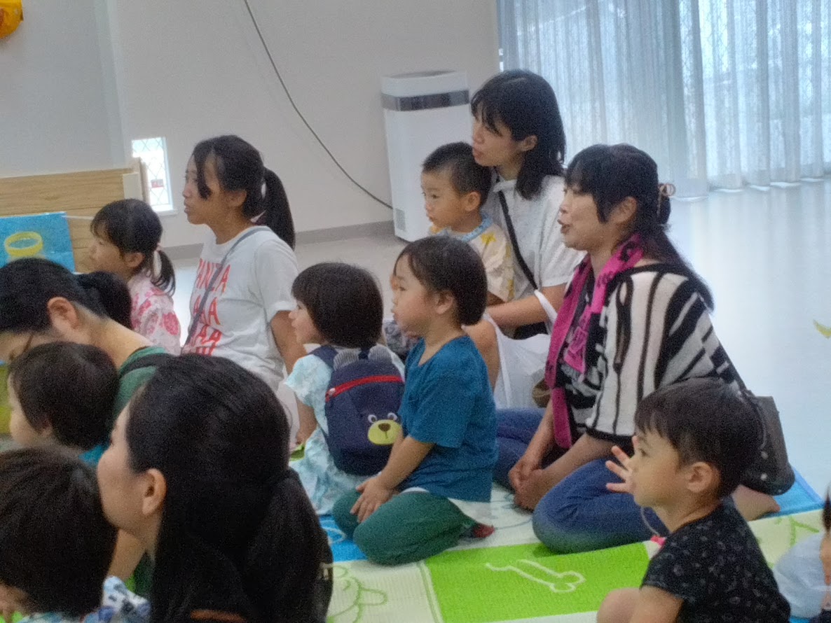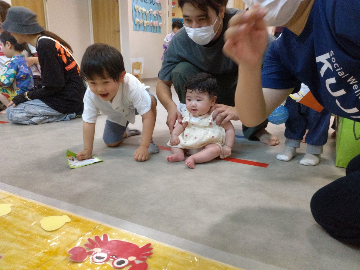 大きな絵本や手遊びなどをしながら、楽しい時間となりました♪