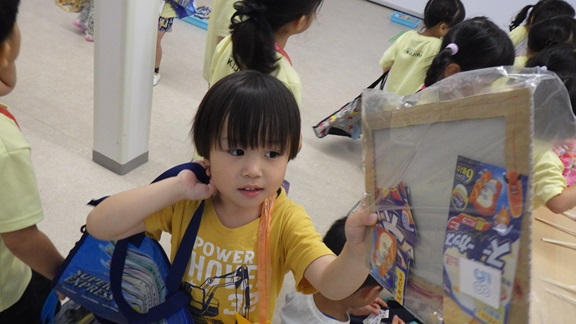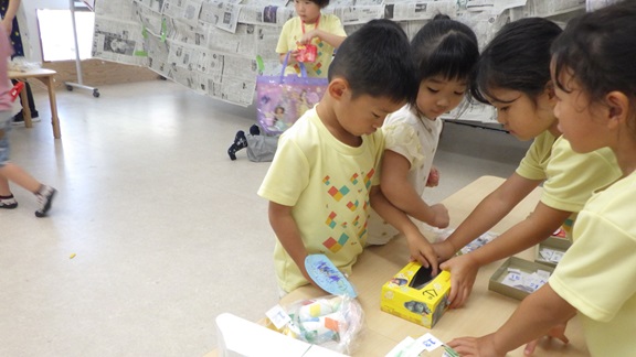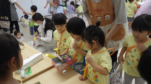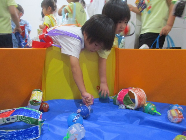 子どもたちのお話を聞きながら、どんなリサイクル素材を使って作ってあるのかもチェックしてみてくださいね♪