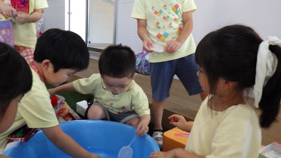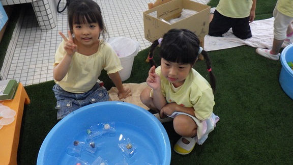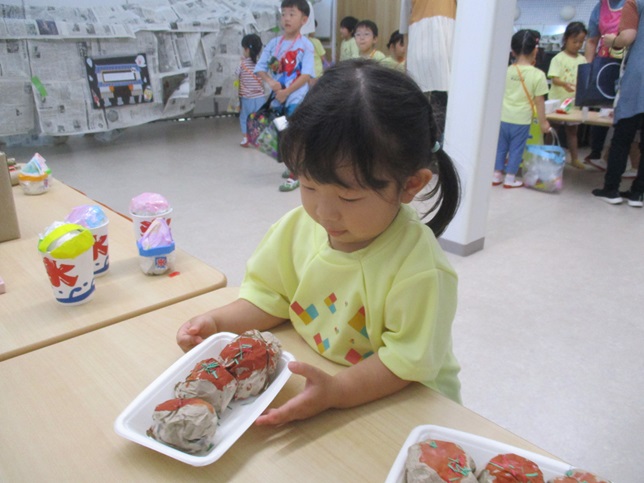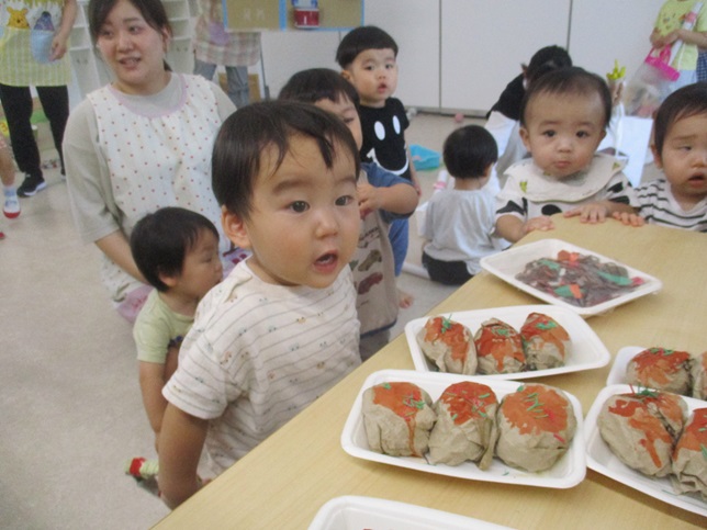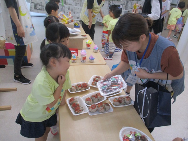 あめ組(2歳児)のお友だちも、たこ焼きのリアルさに感動中ですね☆