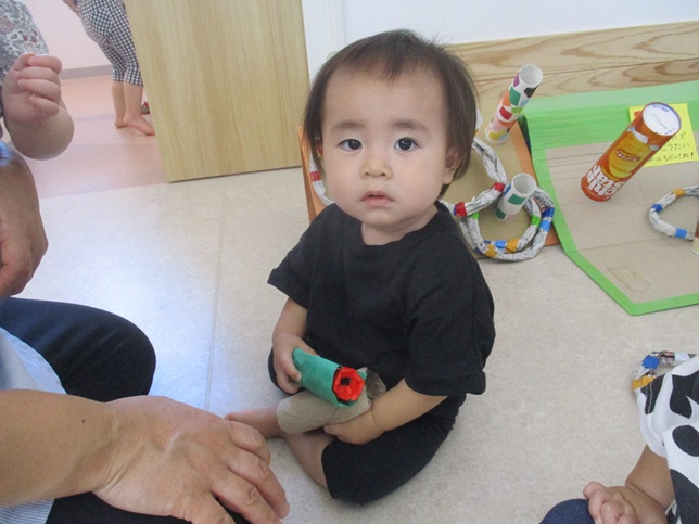 お兄さんたちの楽しそうな声を聞きつけて、だいち組(1歳児)のお友だちもやってきました。