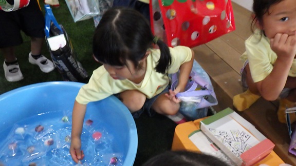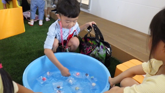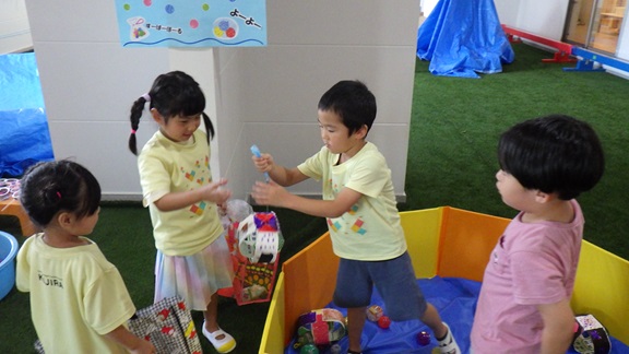 さて今日は、にじ・そら・くじら組(3・4・5歳児)の子どもたちによる『なつまつりごっこ☆2024』の日!!