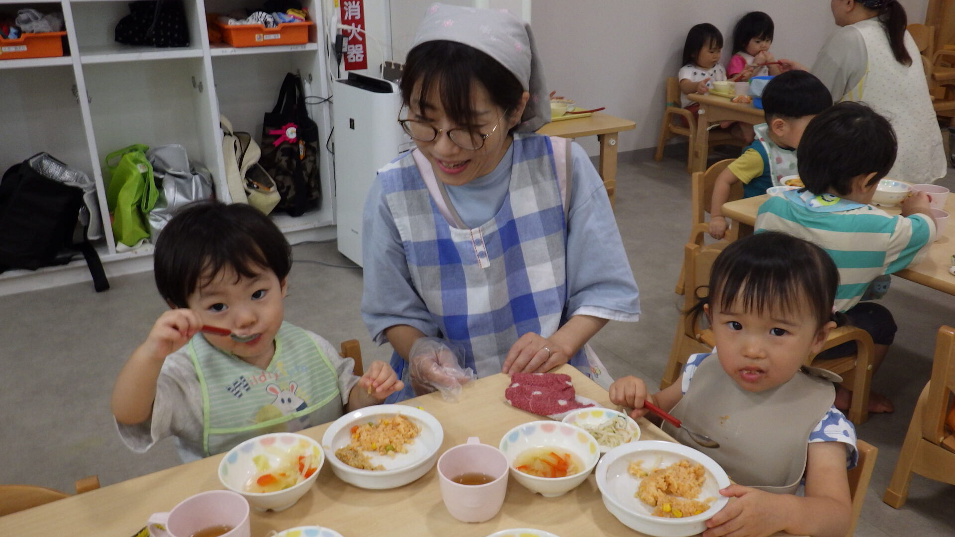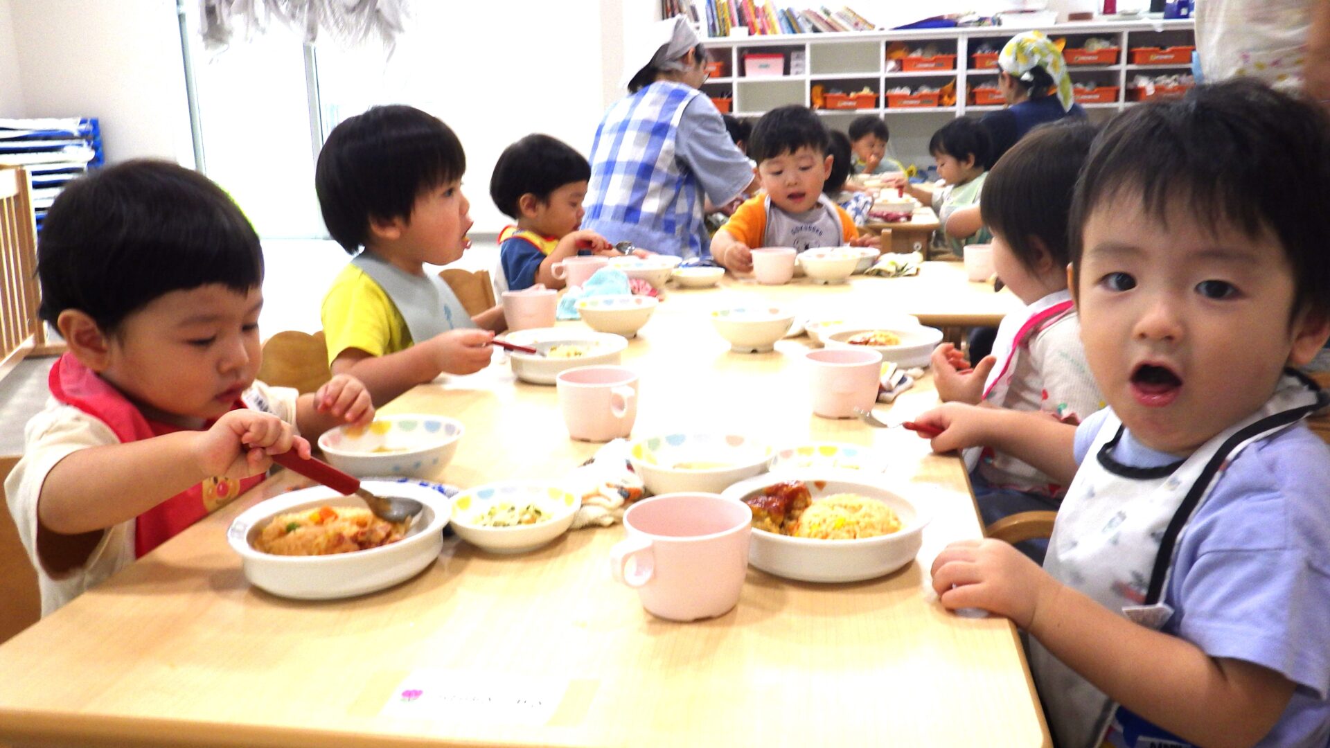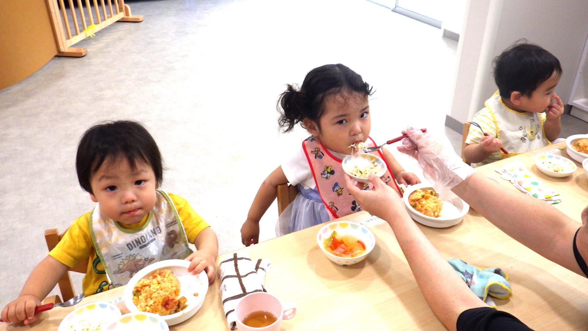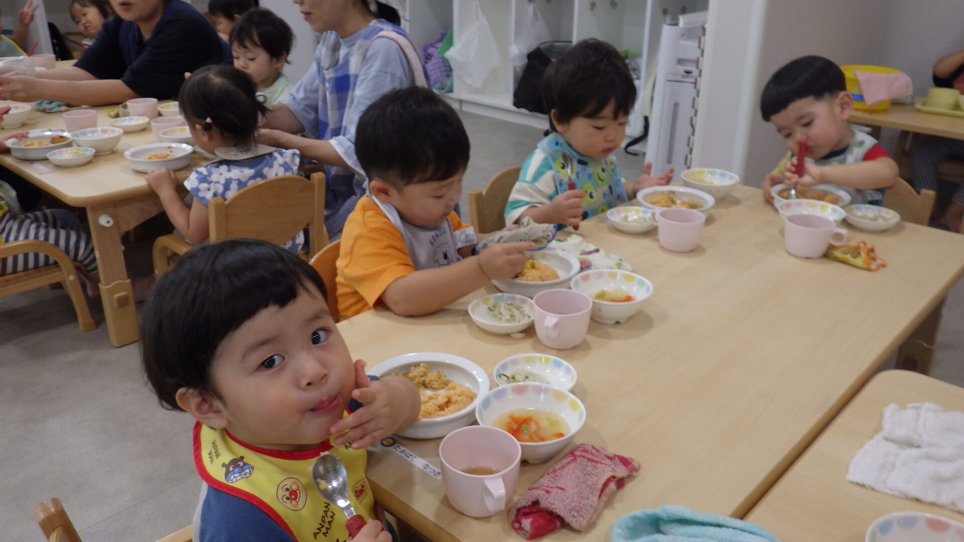 「おいしいねぇ!」などと、お友だちと顔を見合わせてにっこり微笑む姿がみられます。