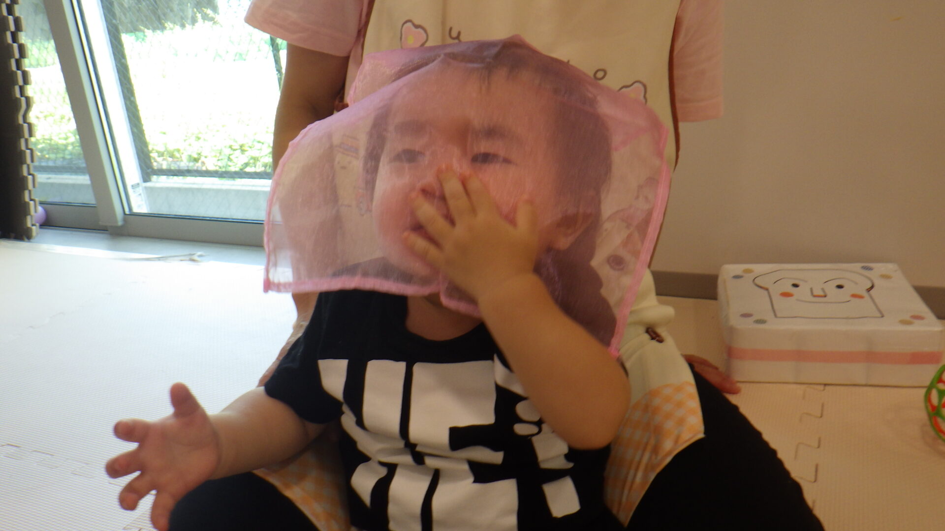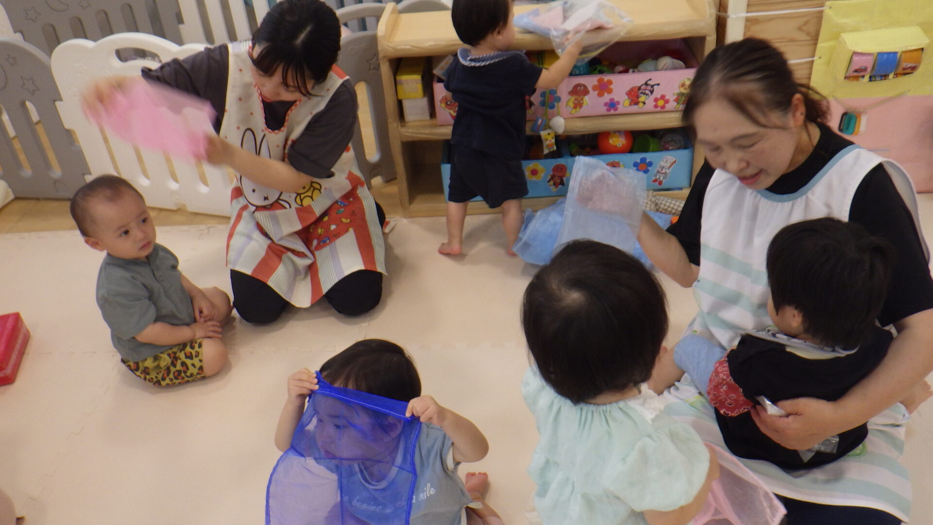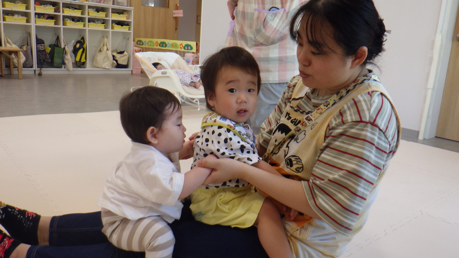 早く慣れて、お友だちになれればいいなぁ~と思い、わらべうたの触れ合い遊びをしました。
