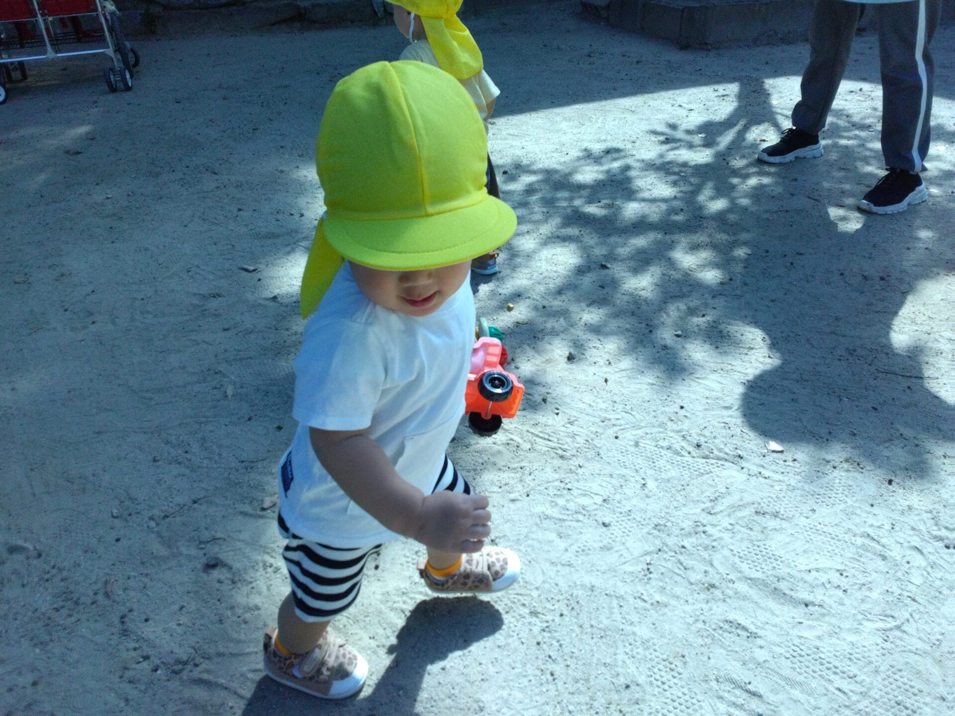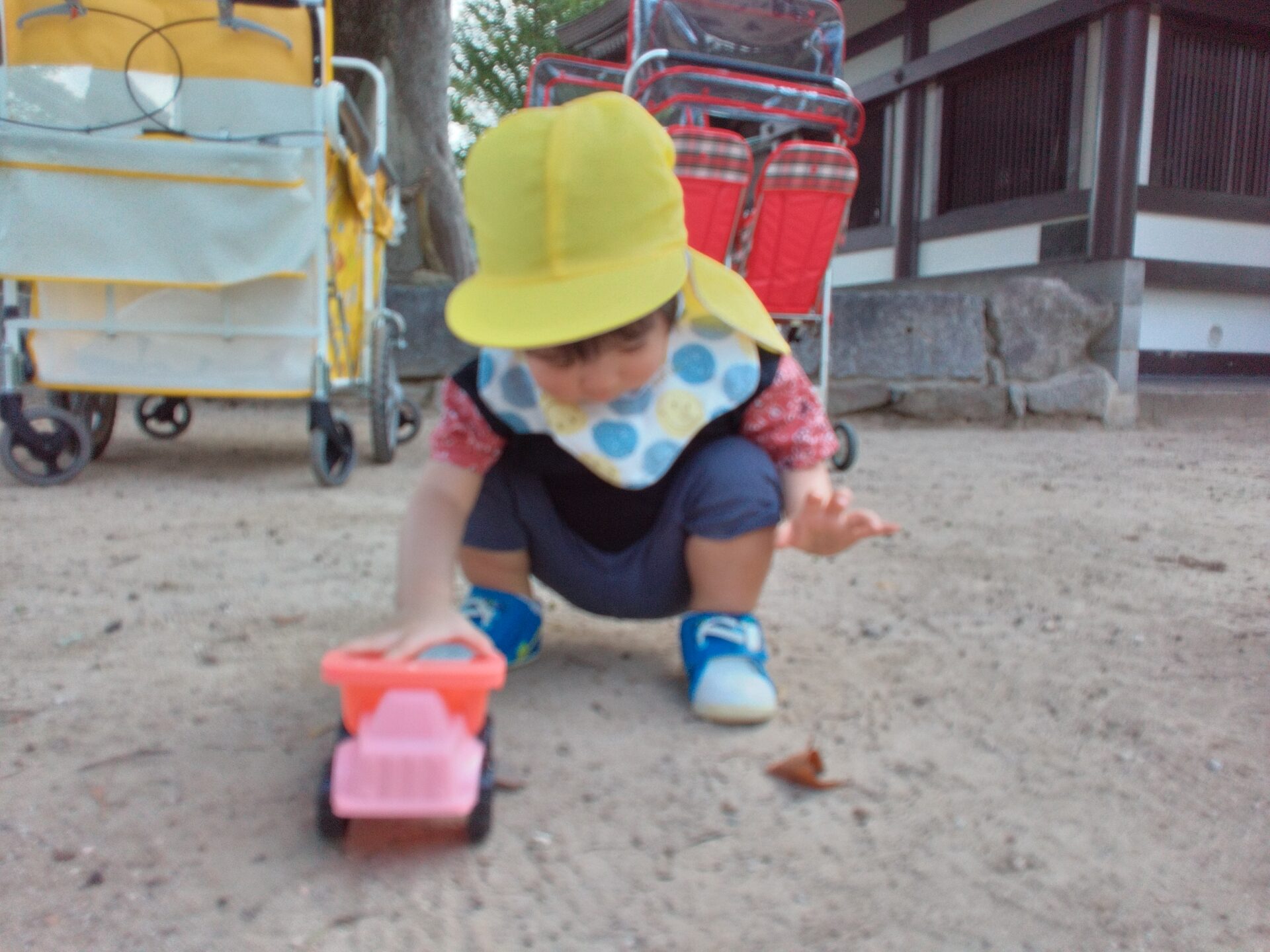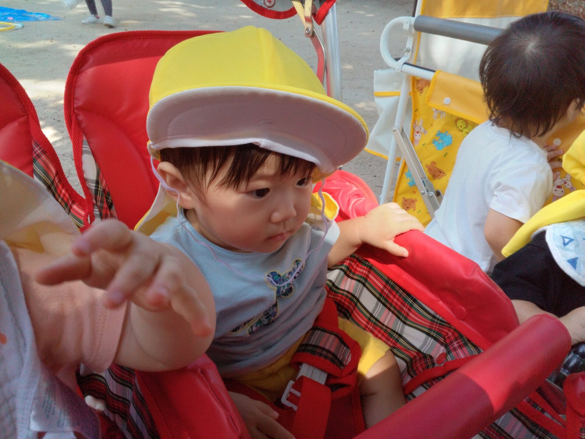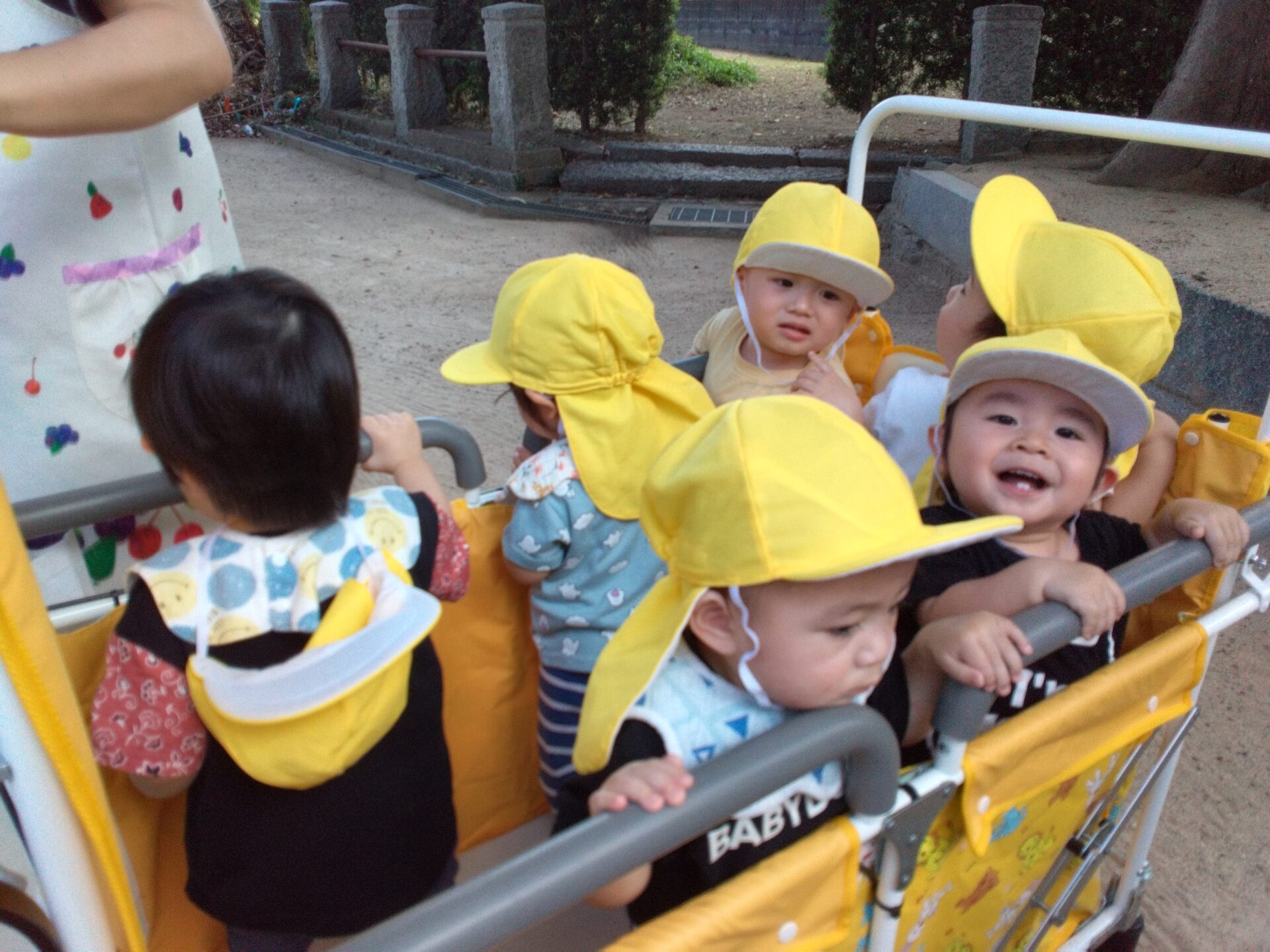 たくさん遊んだ後は、散歩車に再び乗って保育園に帰ります!!