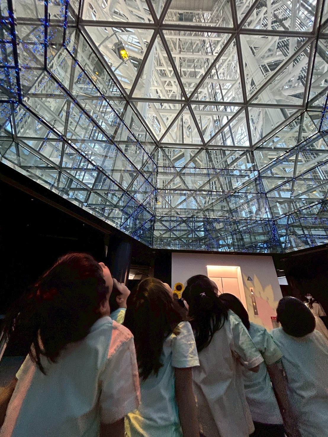 エレベーターに一緒に乗車しアナウンスをしてくれるスタッフさんの話を聞きながら、