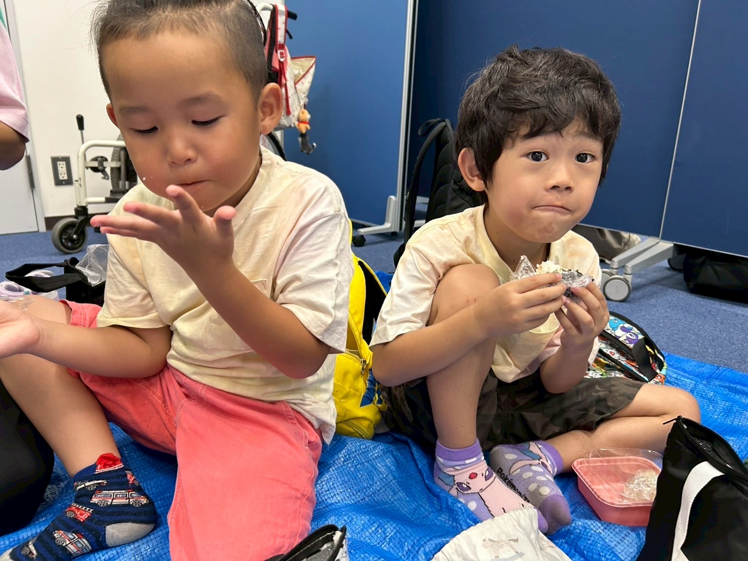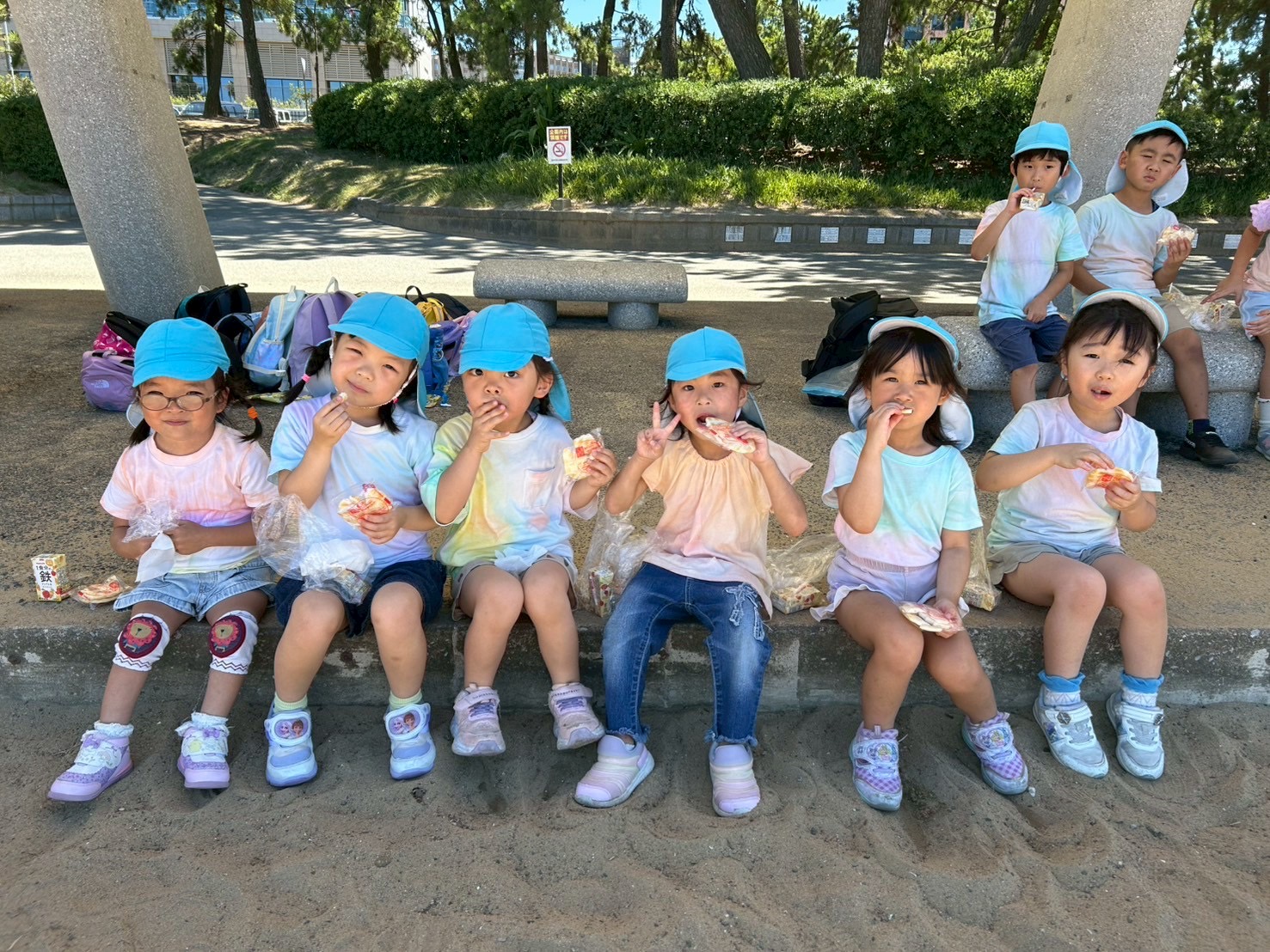 海浜公園では、日陰の涼しい場所でおやつ休憩をし、その後は、