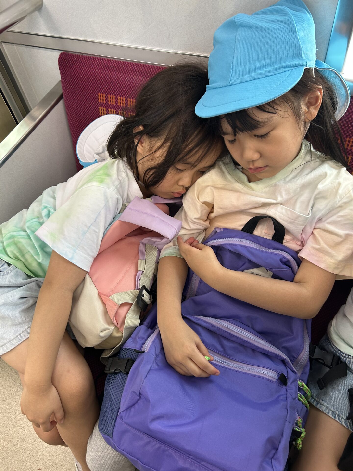 たくさん歩いて、遊んで、さすがに子ども達も疲れたようで、帰りの電車ではとっても静かでした。