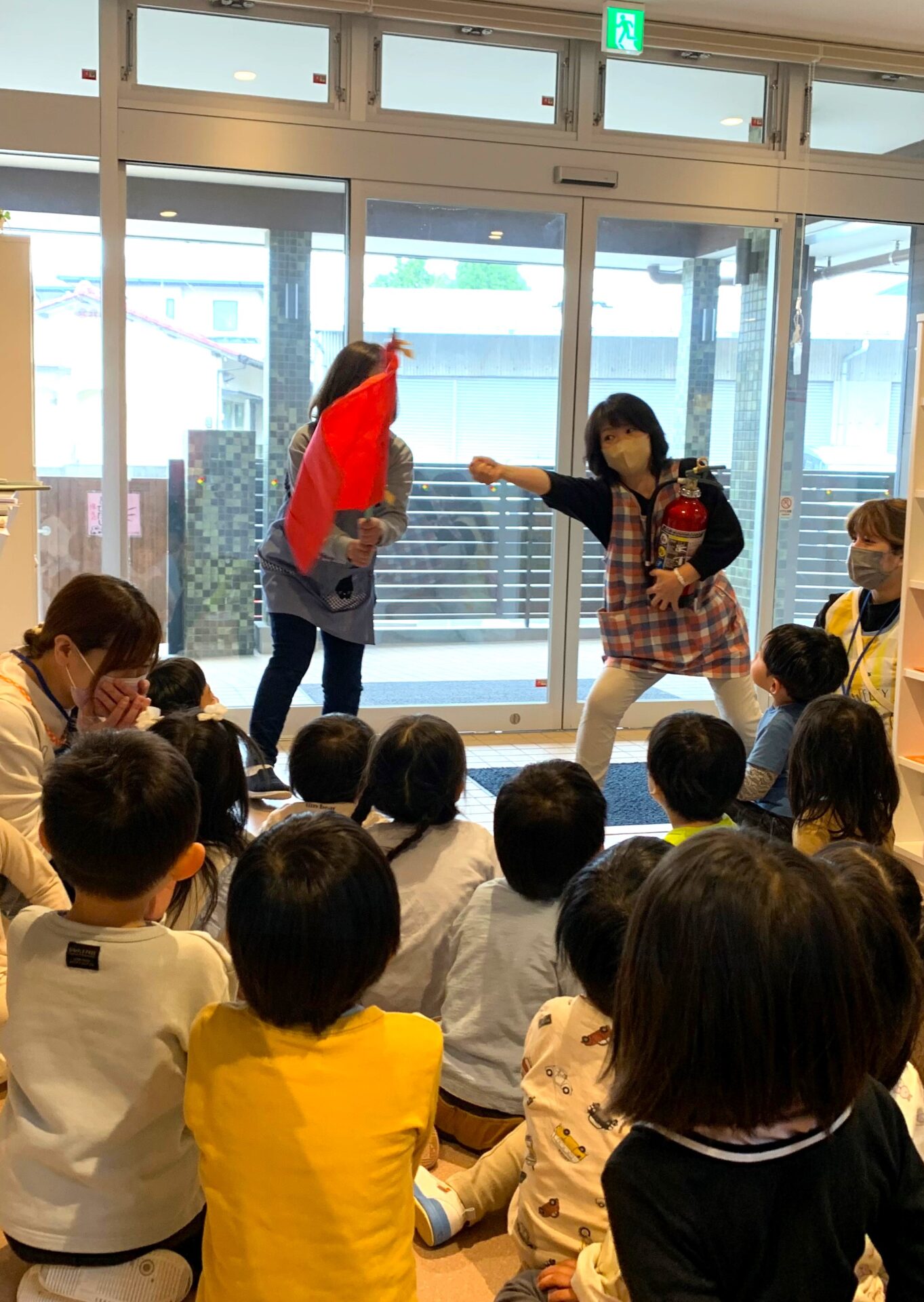2023.04.28 お知らせ 火災訓練(4月25日) 火災が起きた時の約束『おかしもち』の話を聞きました。『お』…『おさない』『か』…『かけない(走らない)』『し』…『しゃべらない』『も』…『もどらない』『ち』…『ちかづかない』また、ご家庭でもお話してみてくださいね。 一覧へ戻る