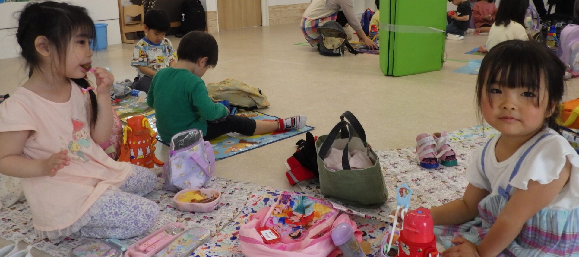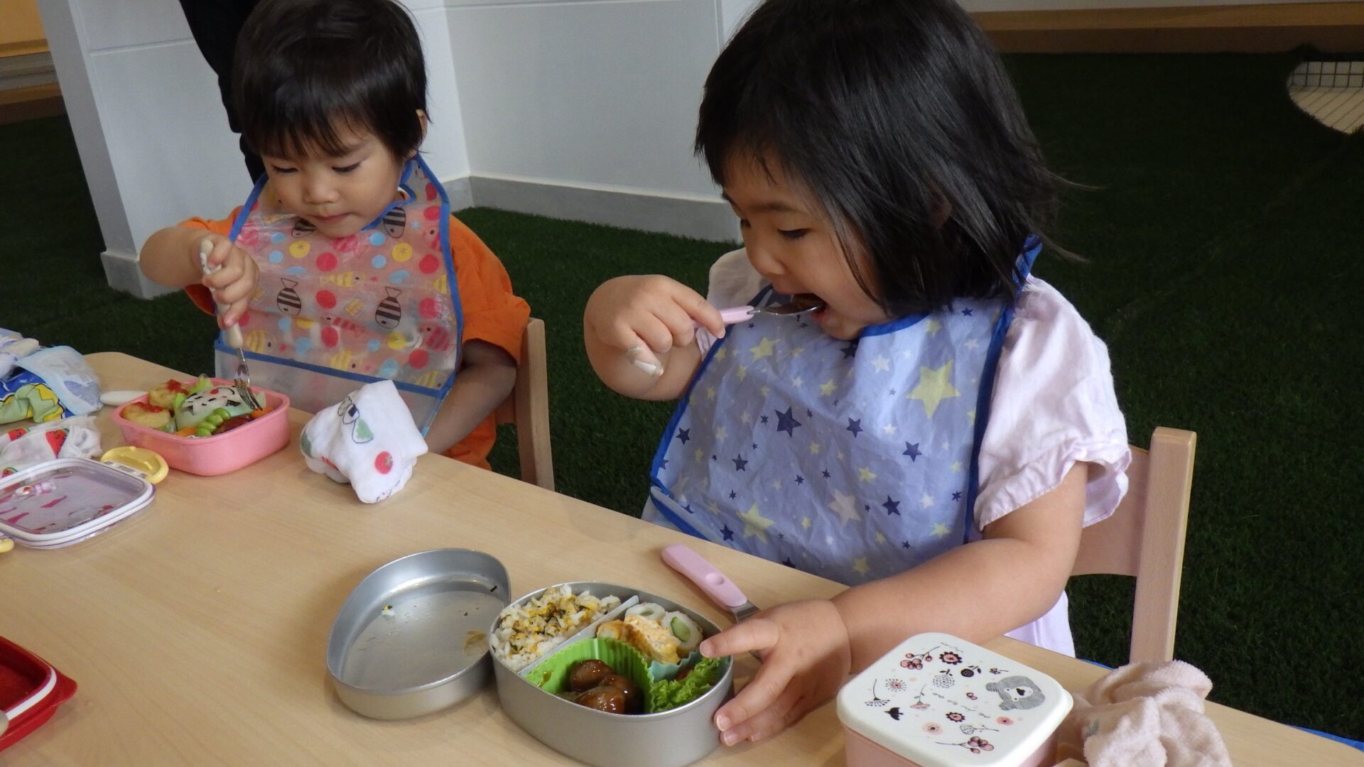 あそんだ後は、おまちかねの愛情たっぷり弁当を、夢中になって食べました。