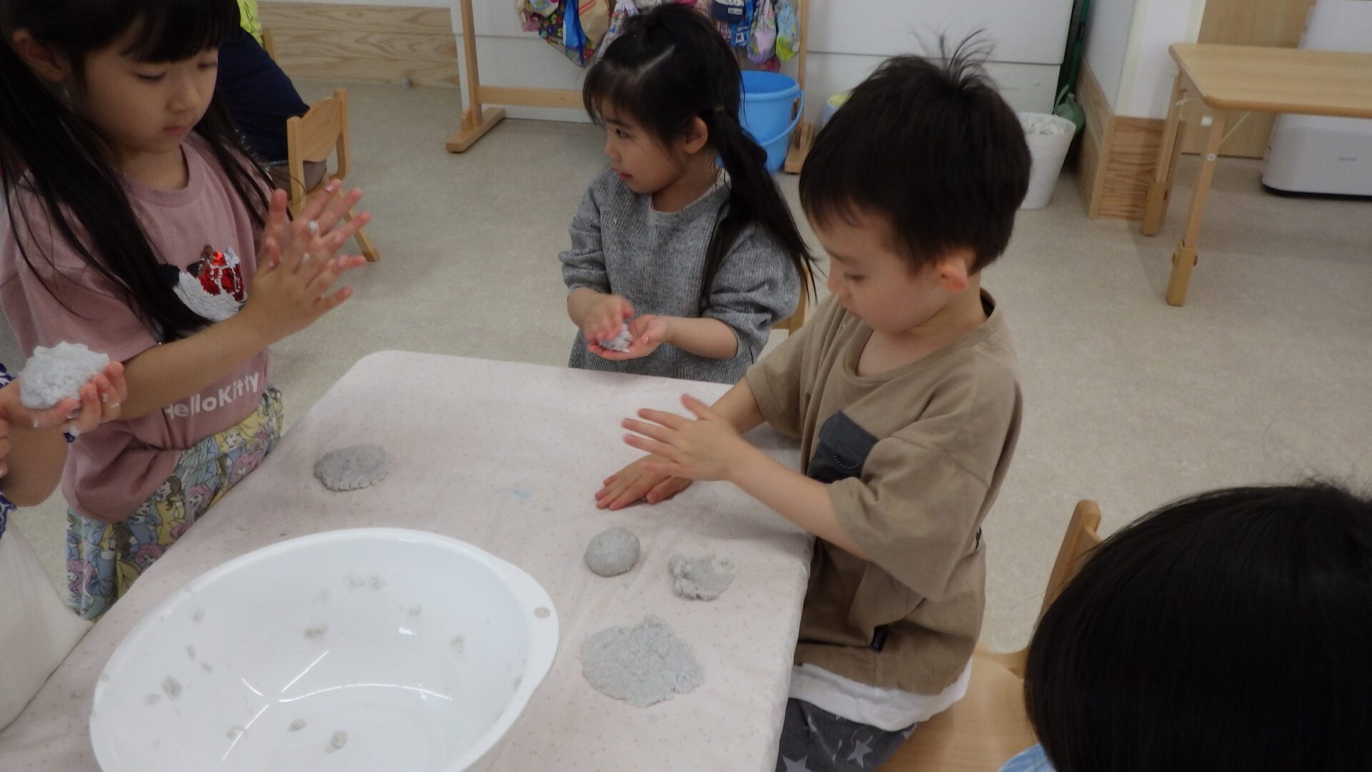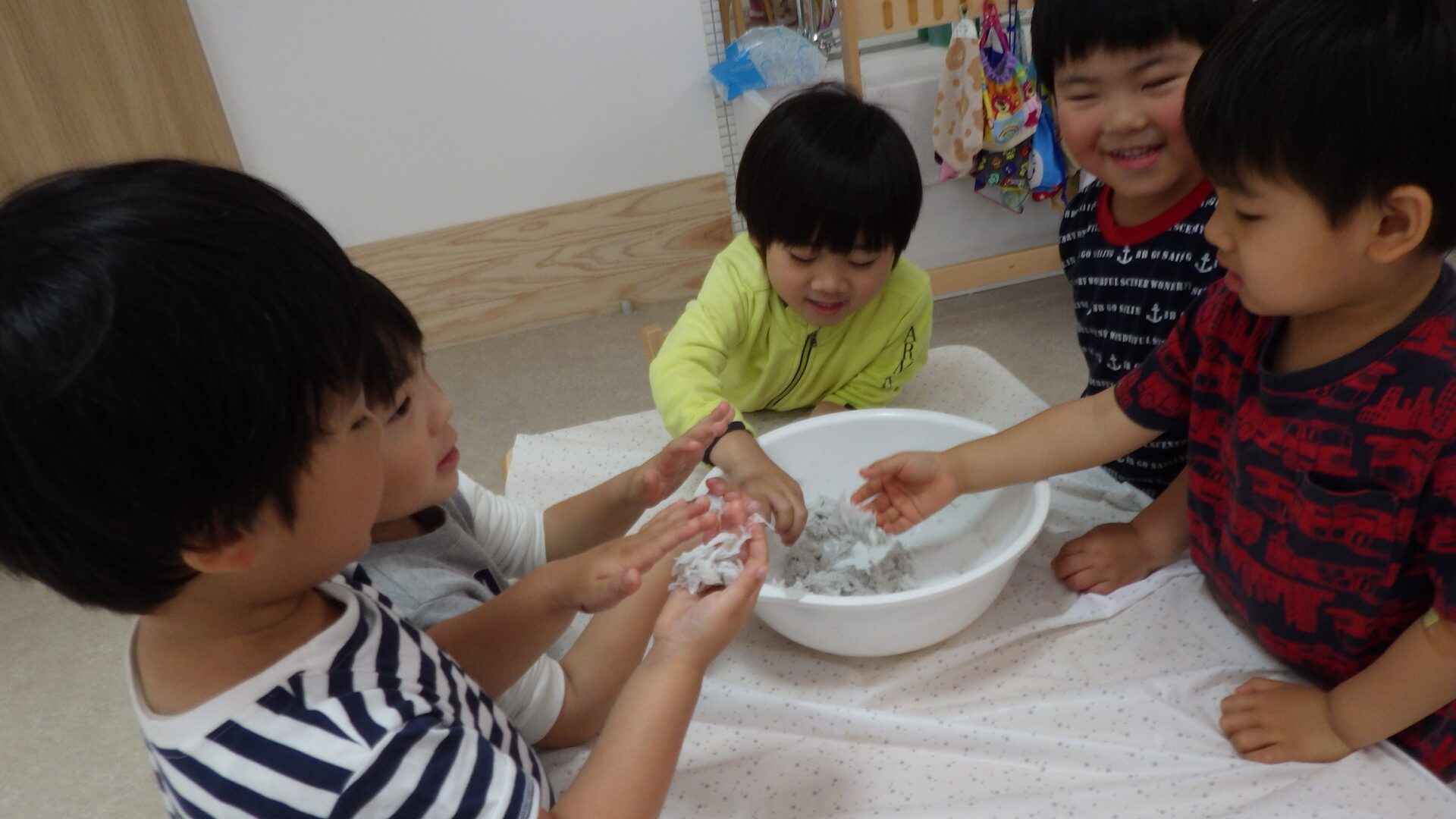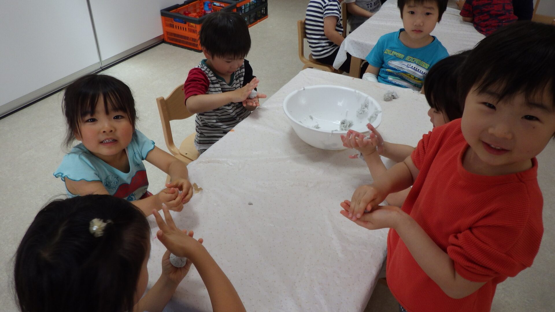 のりとみずをまぜて~!! トイレットペーパーねんどのできあがり♪