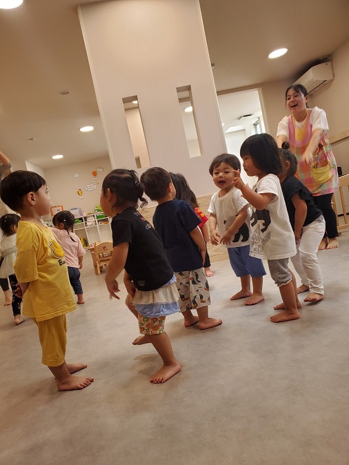一方、2歳児は、友達への関心も芽生え、身体を動かして遊ぶことも大好きです。 しかし、あめ組の部屋ではお友達と、時々、ぶつかってしまうこともあり、