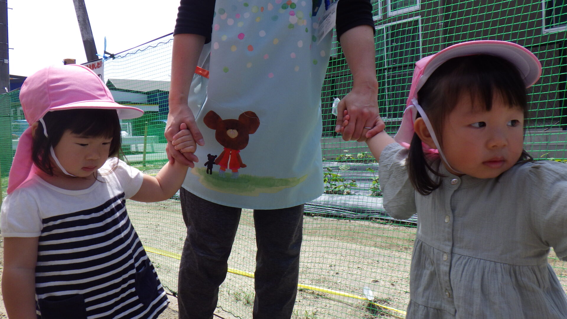 保育園の畑を発見!!お芋の葉っぱの様子を見ていると