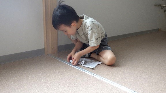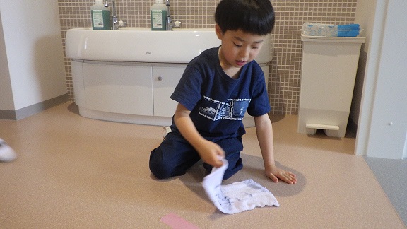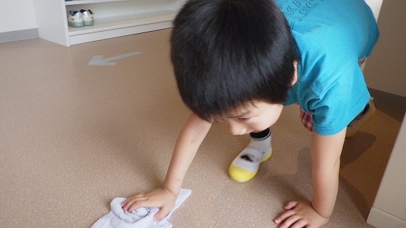 就学前カリキュラムの一環として始めた掃除活動。思いのほかに、毎日楽しんで取り組んでくれるくじら組さんに、先生も他のクラスのお友だちも、感謝感謝です!!