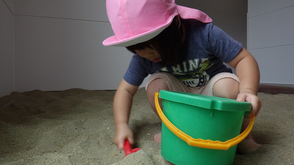バケツに砂を入れて・・・いれて・・・いれて・・・