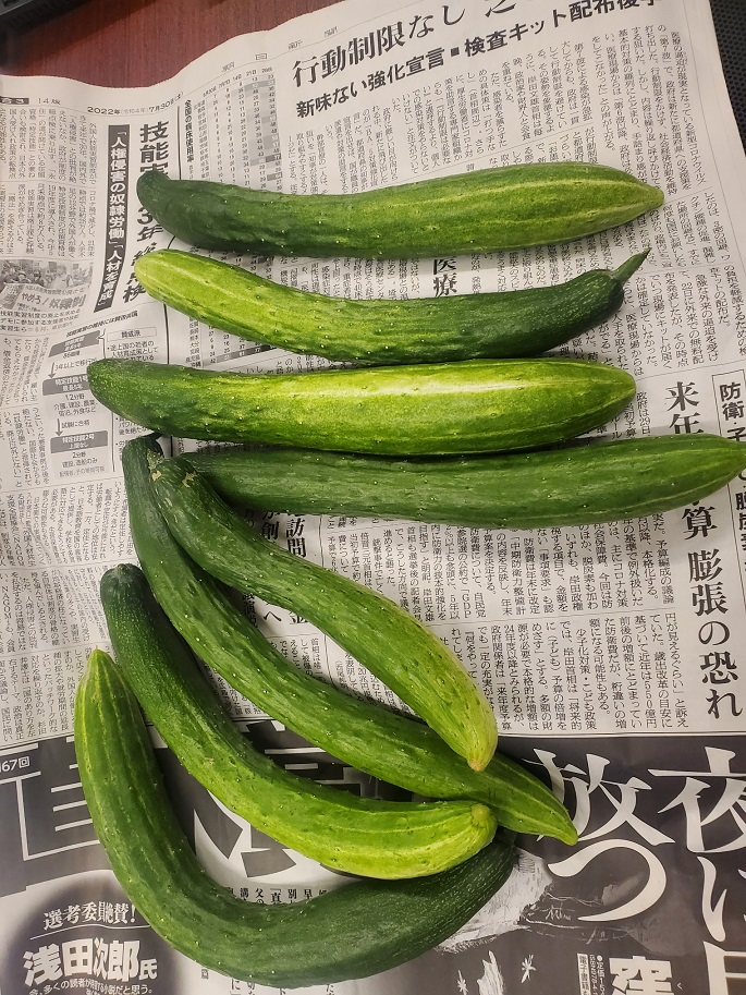 でっかいきゅうりがあり、大喜びです。