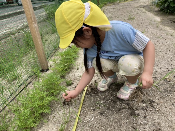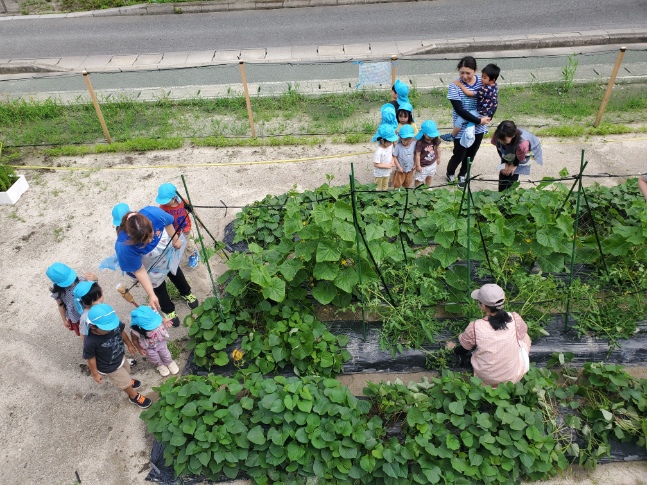 まず、にじ組さん(3歳児)畑に登場