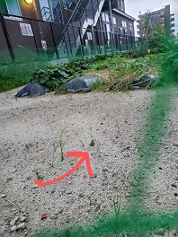 畑に行く前に、先生たちが草取りをしました。(雨が降って草が抜きやすく、チャンス!!)