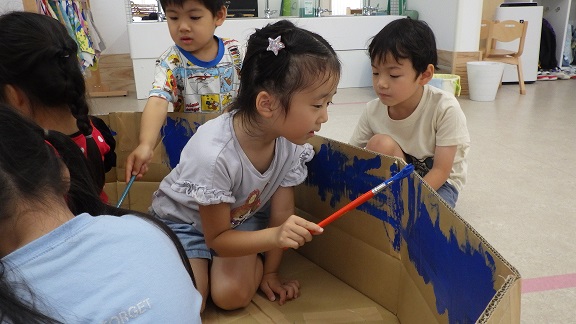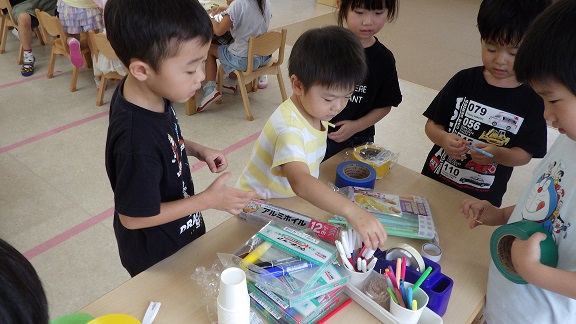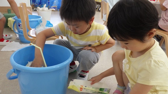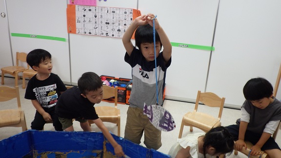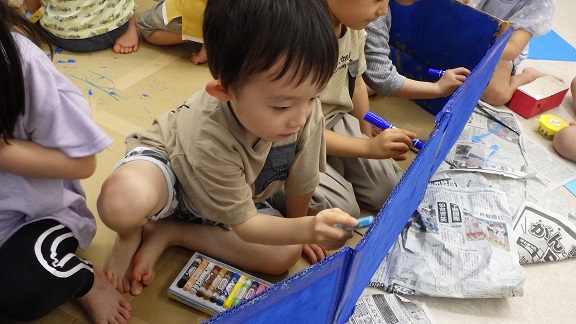 「先生、夏の遊びしよう!」の一声で、そら・くじら組では、大型プロジェクトが始動しました。