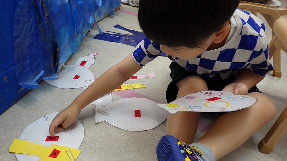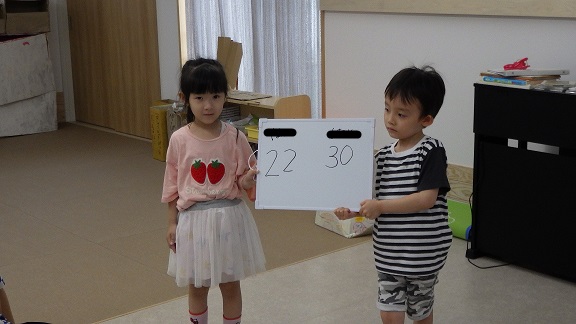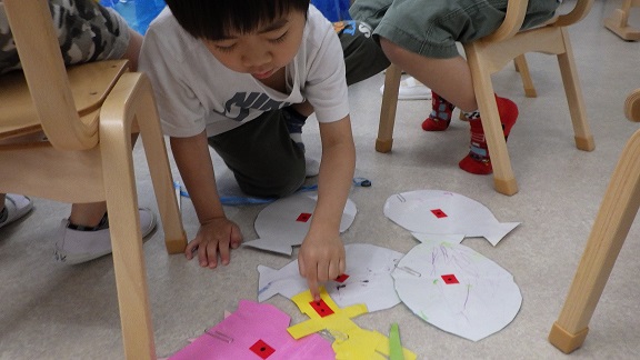 今日の魚釣り大会では、ポイント制にし、魚の裏に書いてあるポイントを計算しながら、お勉強?いえ、お遊びを進めていきました。