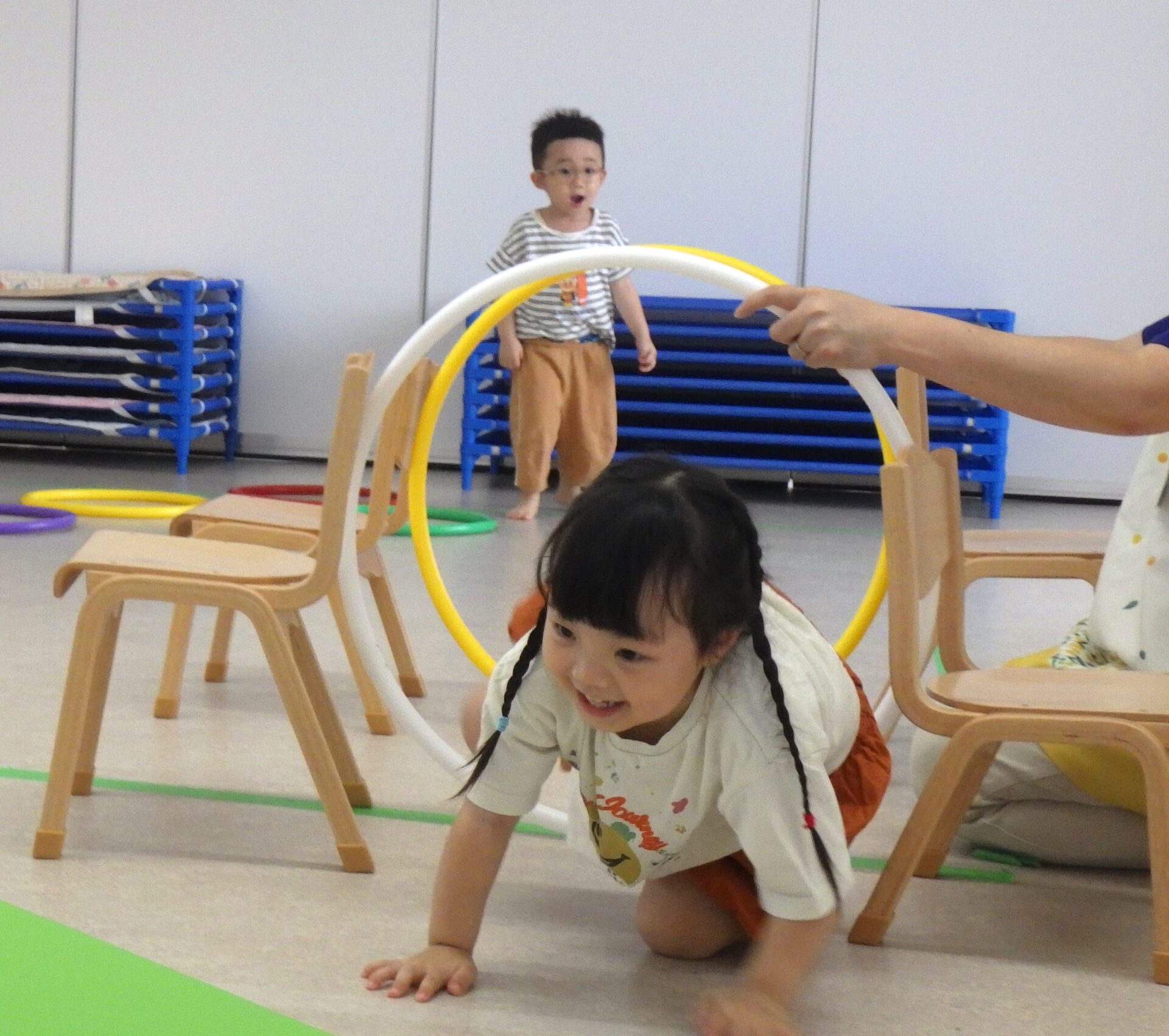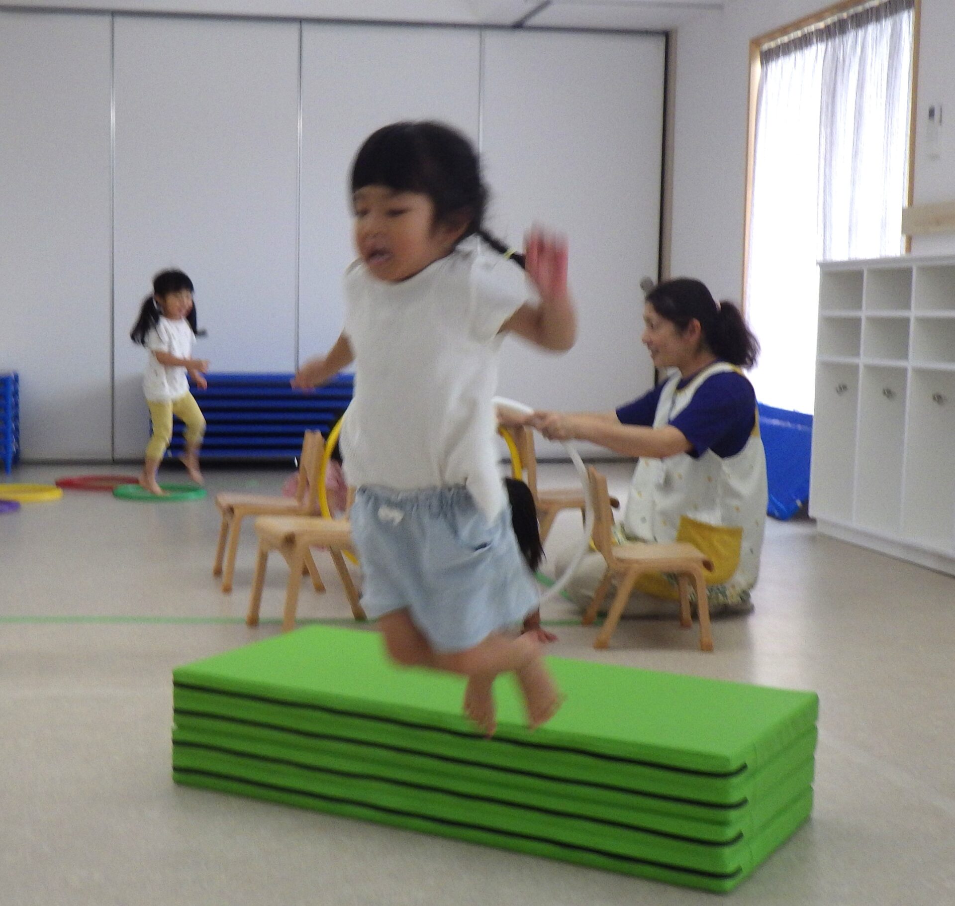 くり返し、くぐって、跳んで、転がって、笑顔も出る中、楽しそうに遊んでいました(^_^)