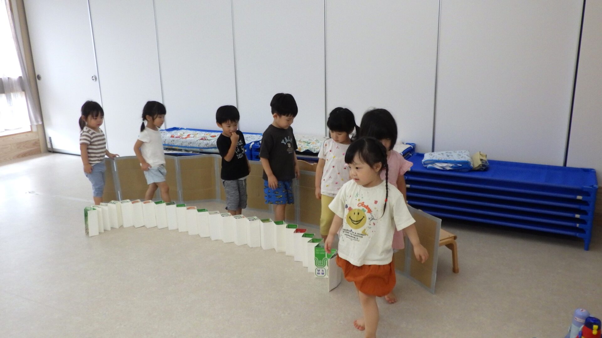 今日のにじ組さんは、お部屋でサーキット遊びをしました。