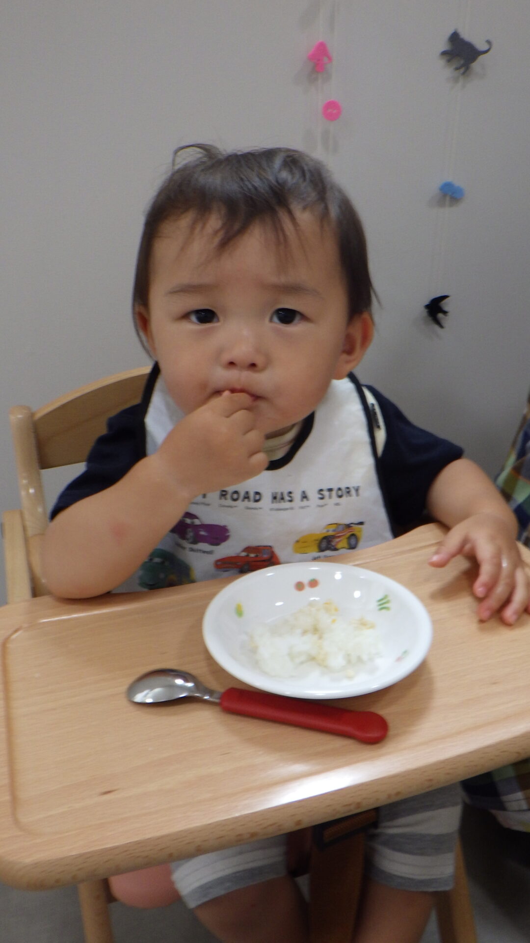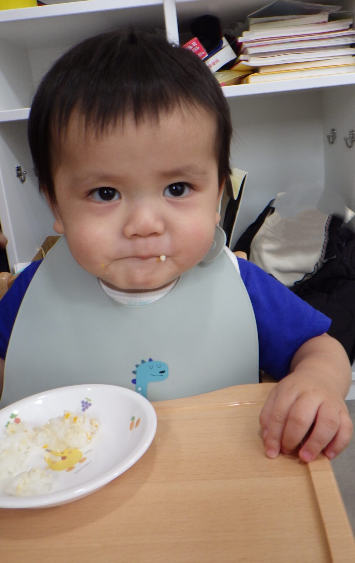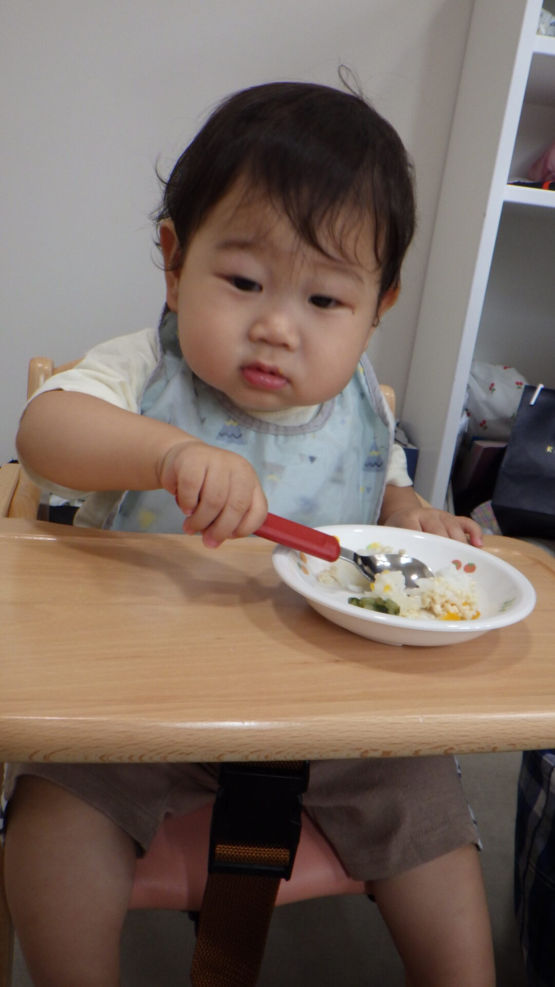スプーンを握りしめ口に運ぶ姿も見られるようになりました♪