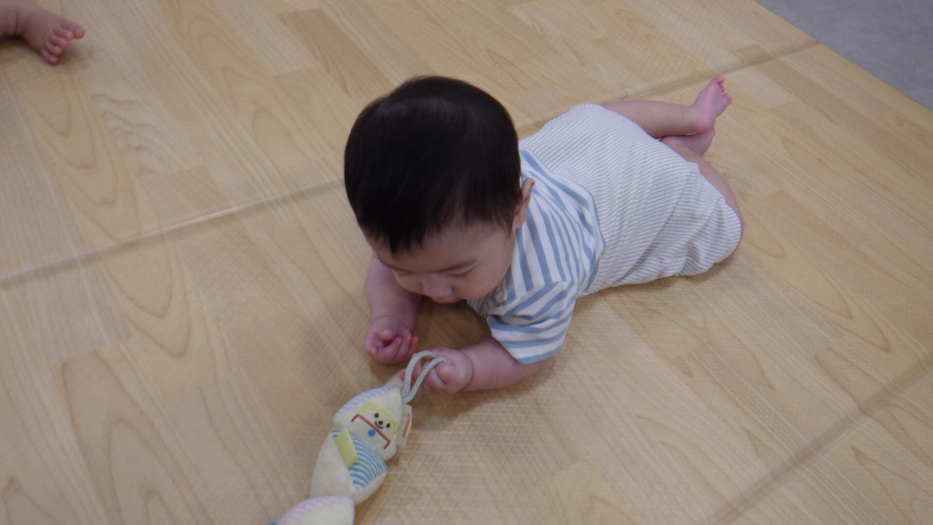 ”あともう少し~~”と、必死に手を伸ばしおもちゃを取ろうとしてます!