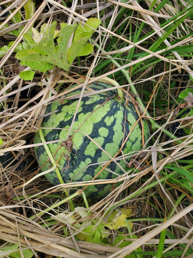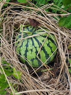 お盆に入る前、スイカが収穫の時を迎えていました。