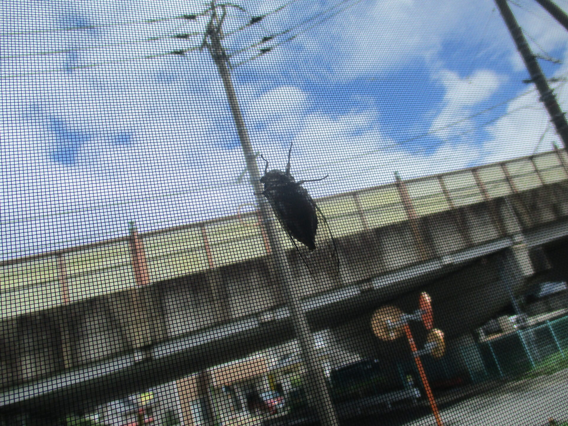 トイレの網戸にセミさんが遊びに来ていました♪(先生は見て一安心!!)