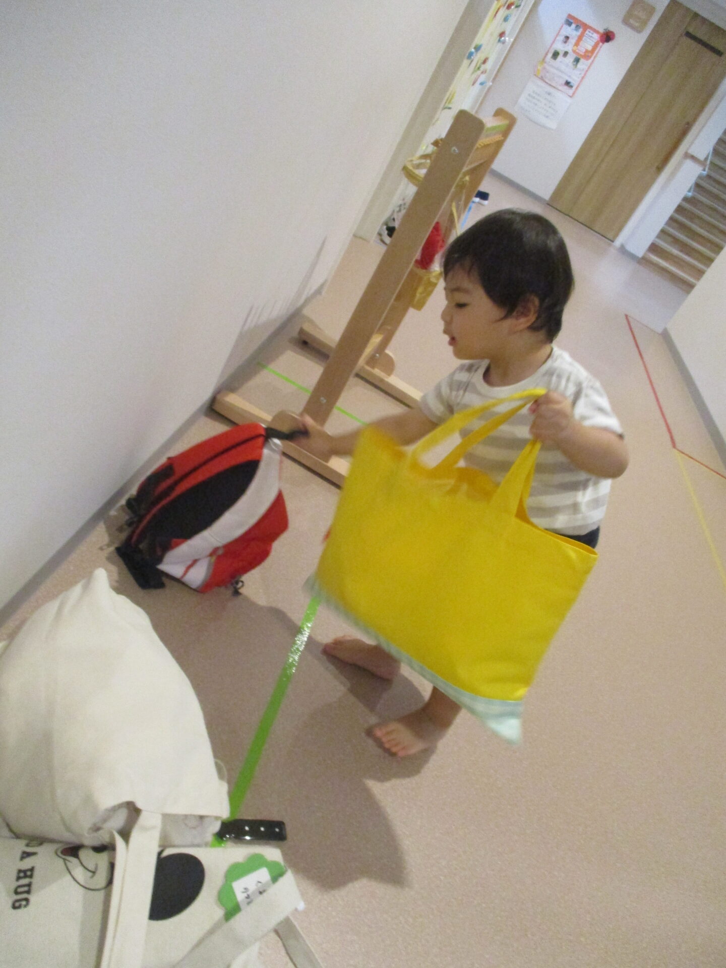 たくさん遊んで、帰りの会も終わった後、廊下に荷物を置く準備をしているのは誰だか知っていますか??