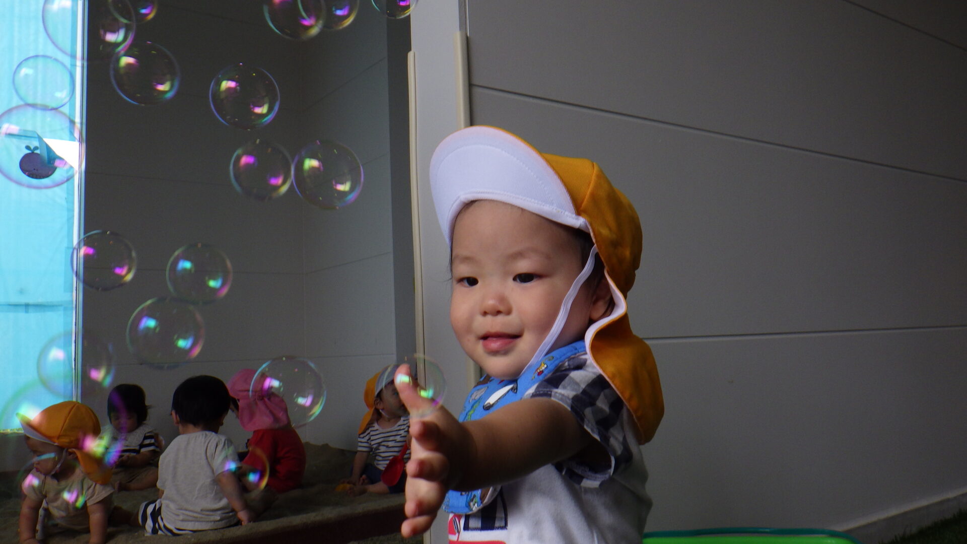 久しぶりのシャボン玉では、笑顔で追いかける子もいました♪