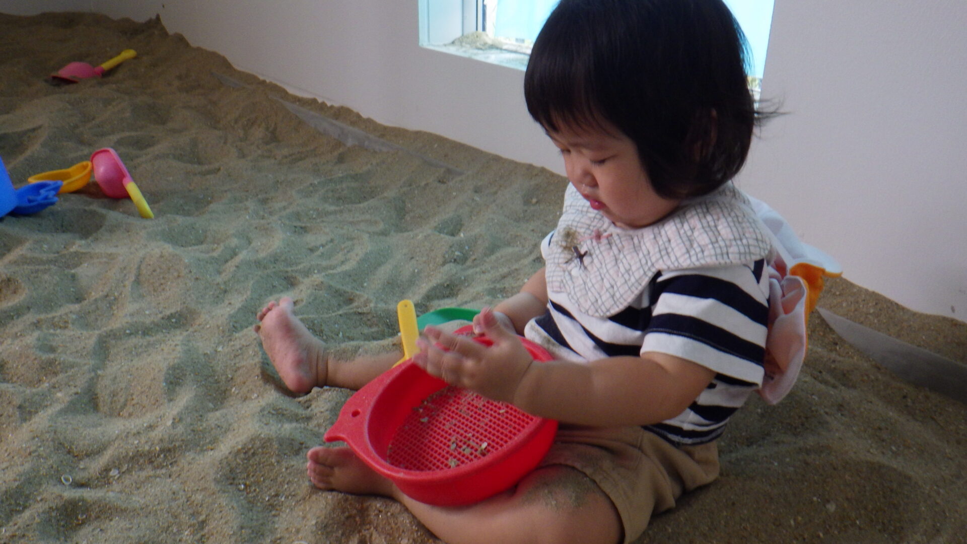 砂のサラサラや小石のザラザラの感触を、楽しんでいます!!