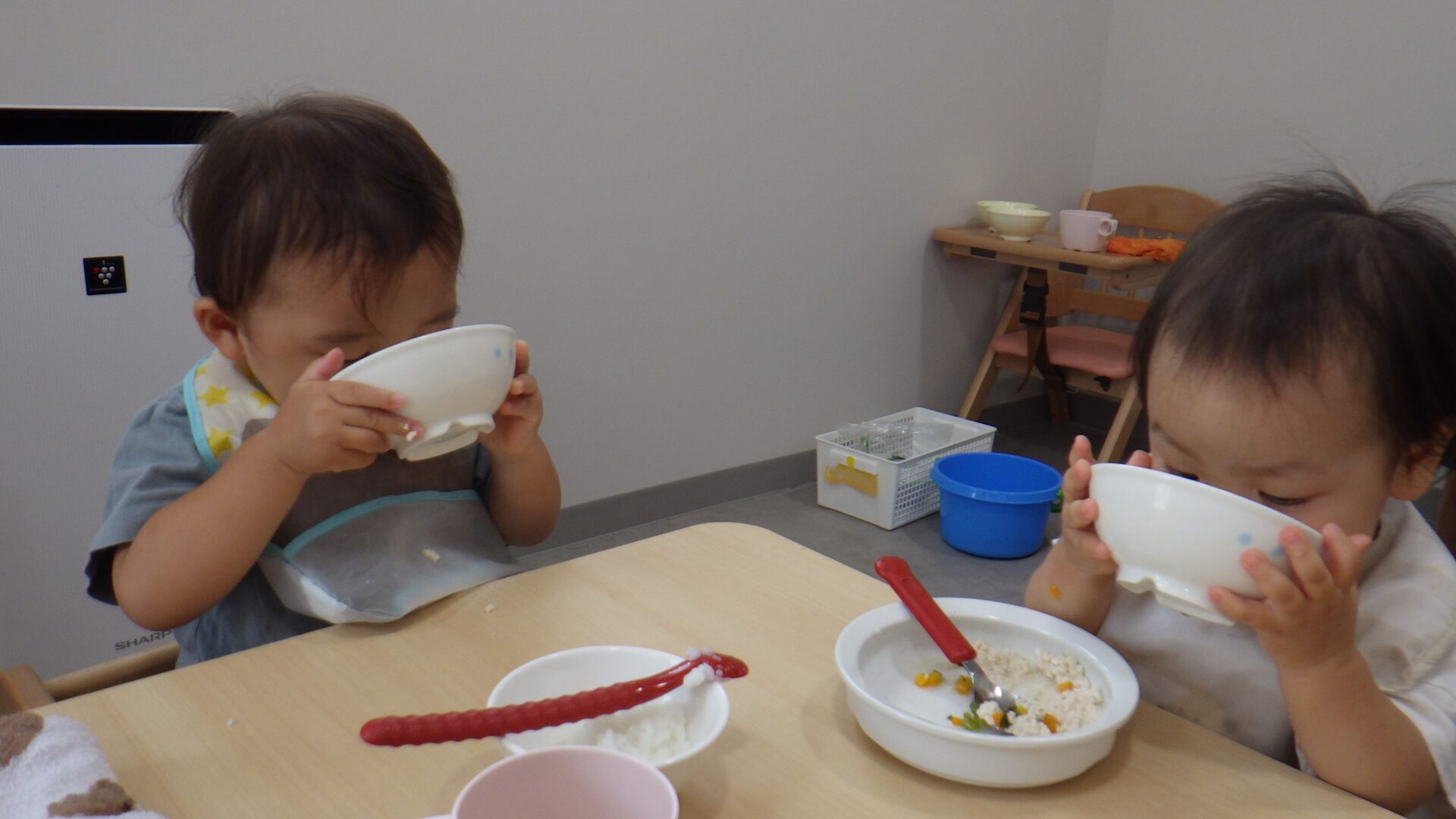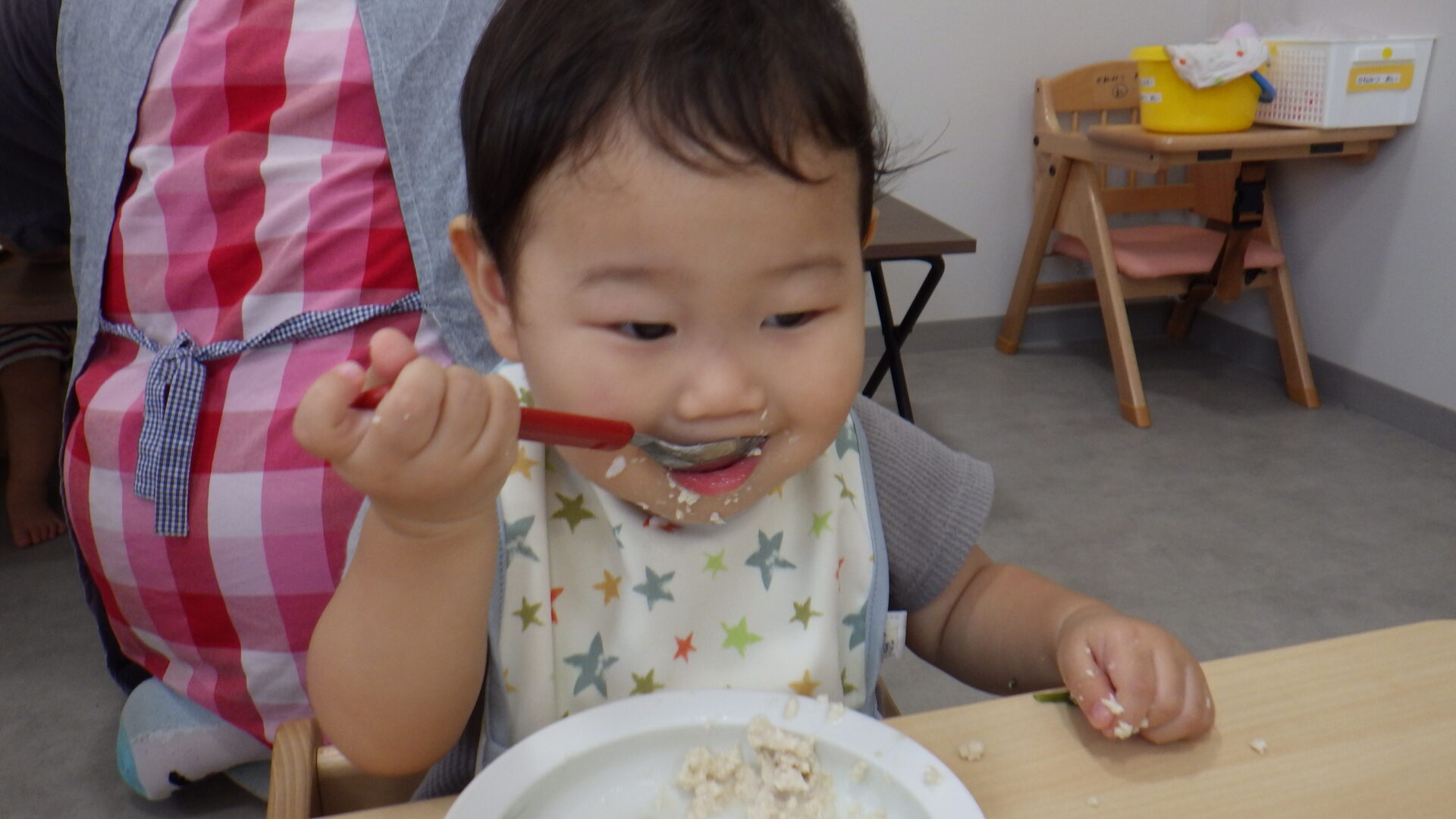 おなかペコペコな子どもたちは、自分たちでスプーンやお椀を持って、上手に食べることができるようになりました♪