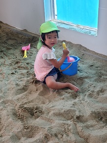 園庭には、お砂場があります。もくもくと遊んでいますね。