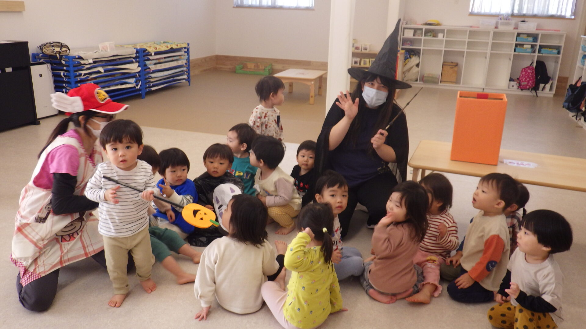 園長先生たちの変身っぷりに、少々驚いた表情を見せる子も・・・
