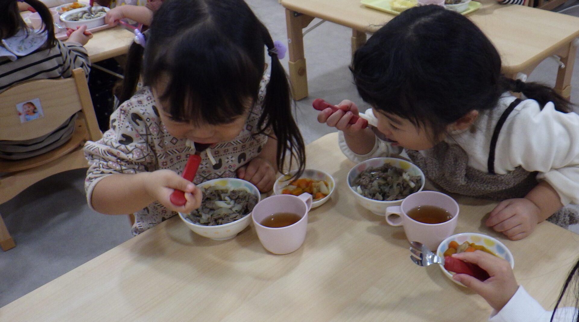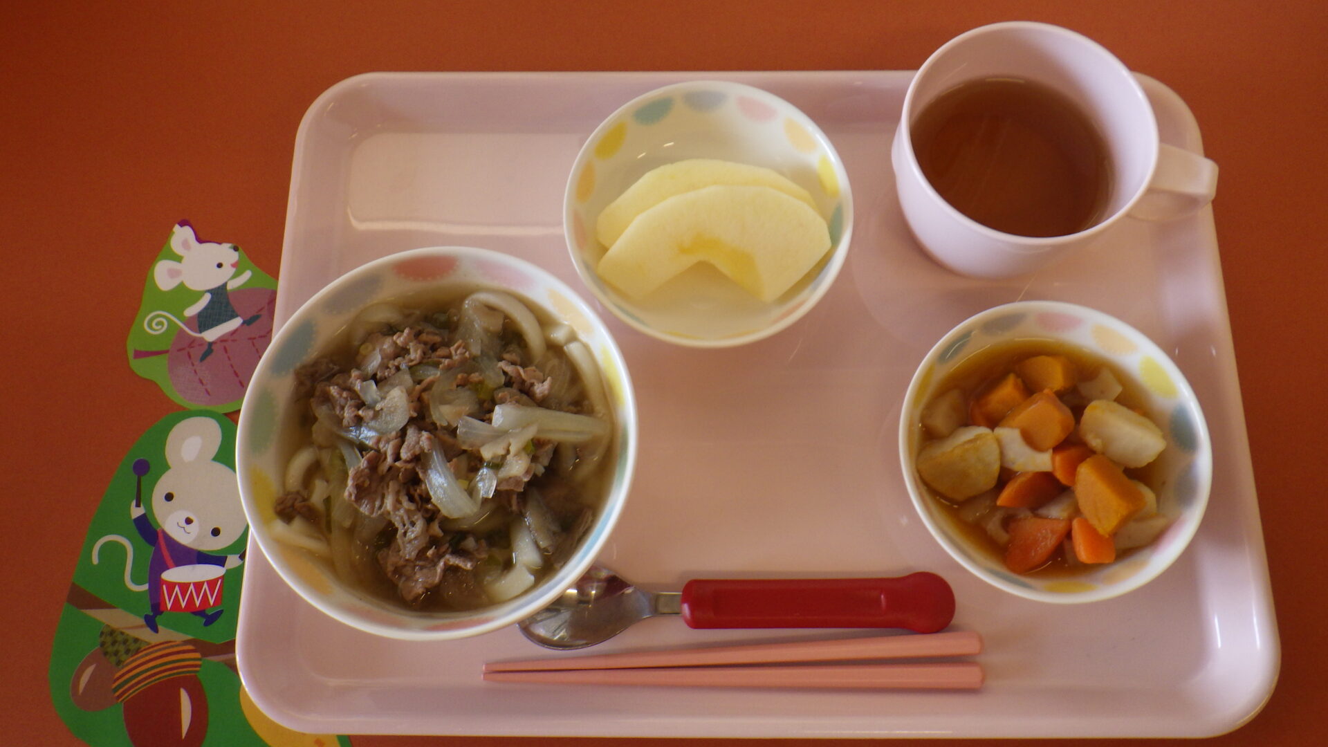 2023.11.27 お知らせ 11月25日(土)献立 給食メニュー♪ ・肉うどん ・吹き寄せ煮 ・りんご 「ん~~~!!美味しすぎて一口が大きくなっちゃう~!!!」 今日も、幸せいっぱいのお友だちです♬ おやつメニュー♪ ・牛乳 ・甘辛せんべい 一覧へ戻る